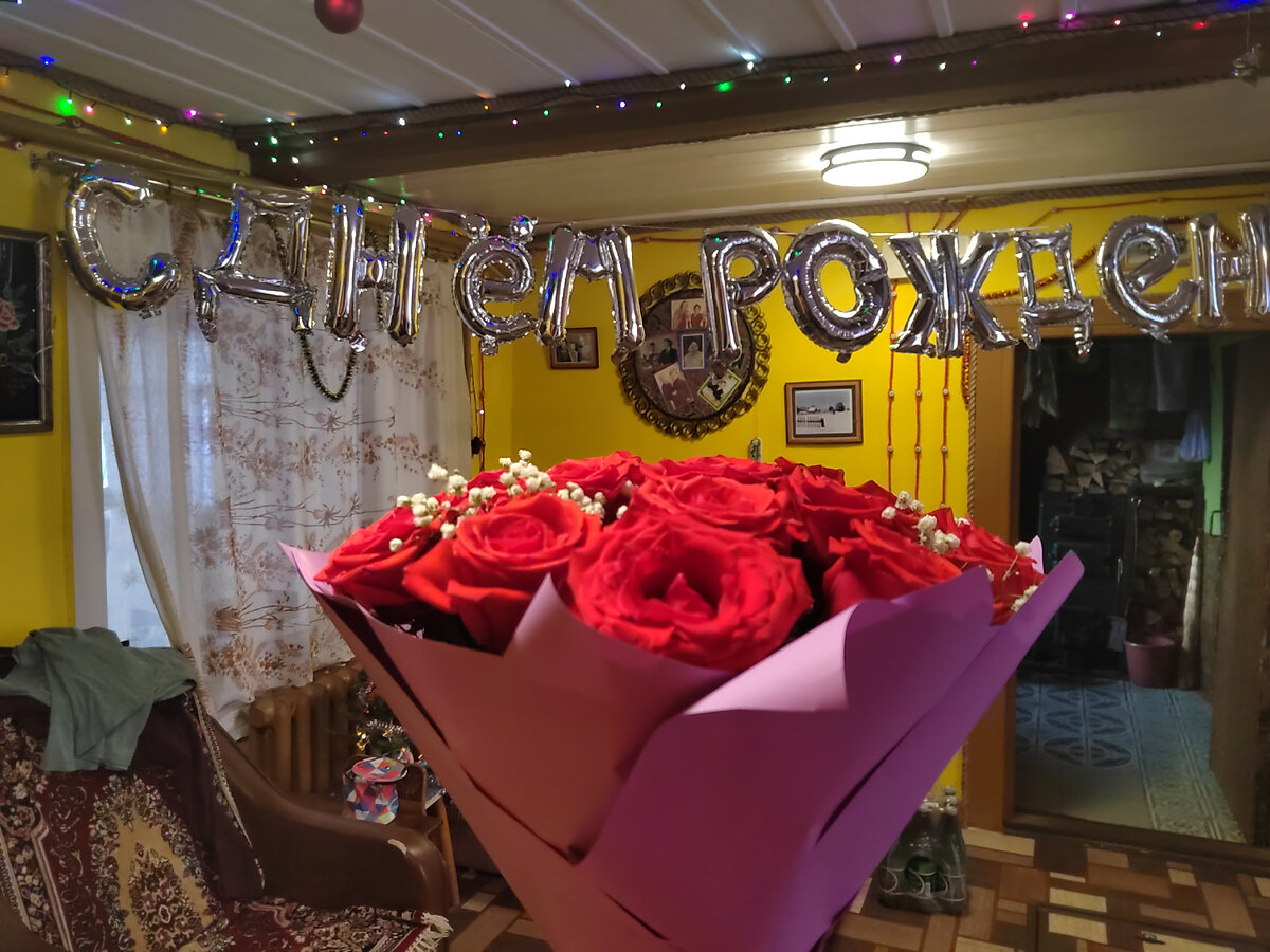 В общем, 1 января мне стукнуло 35 стукнуло (статью вы читаете, скорее всего, 2 числа или в другие дни). Да, моя мама круто отметила 1989 год! Так, что аж рожать пошла. 😁😁😁 Этот день рождения я отмечала на даче у свекрови. Вечеринка для друзей будет 5 января. 😁 Когда проснулась, увидела такую вывеску "С днём рождения" и цветы. Цветы, естественно, розы. Собственно, а что я хотела, когда на дворе зима? Розы мне дарят постоянно, хотя я их не очень люблю. Нравятся крупные ромашки, но зимой у них не сезон. :) Пока я умывалась и приходила в себя, свекровь с тетей мужа накрыли на стол и приготовили торт с надписью "В 35 — баба ягодка опять". 😁 День рождения я отмечала прям в пижаме, мне было лень краситься и переодеваться. 😁 Но самое главное — подарок. Когда я его показала подруге, она спросила: "А это нормально? Ты не обиделась?" Согласна, такой подарок мог бы обидеть даму, но не меня. Я себя адекватно оцениваю. Меня муж в принципе выбрал в жёны ещё и потому, что я стройная была. Ему