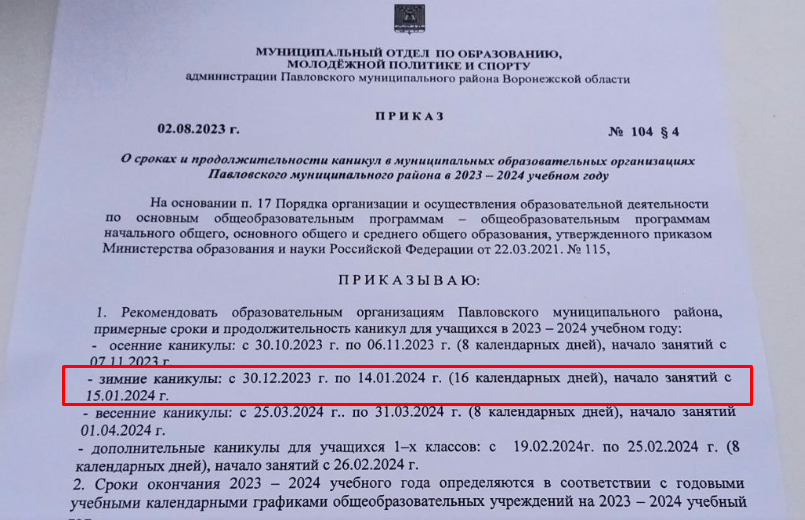 Учителя всегда выходили на работу примерно 9 января. Понятно, что только те, кто не брал дни за отгулы или отпуск за летние каникулы, которые всё равно пропадают из-за ОГЭ и ЕГЭ. Но дети всегда выходили на учёбу примерно накануне старого Нового года. Всегда. Но не в этом году. Я в этом году многие дети начинают третью четверть аж с 9 января. Вторника. А вот большинство детей страны должны начать учиться аж с 8 января. Согласно рекомендации Минпросвещения Все вместе, сразу, учителя и учащиеся. Я тут нашёл приказ из Воронежа. Там каникулы почему-то как и раньше, те же самые. Продолжительностью 16 календарных дней. Вот мне интересно, как такое может быть в едином казалось бы образовательном пространстве? Министерство берёт и режет вдвое зимние каникулы. По их мнению дети должны были учиться и 30 декабря. Всего на каникулы они выделили 7 дней, с 1 по 7 января. Понятно, что на рекомендации минпроса можно положить с пробором, но всё-таки как дело обстоит на самом деле? Многие ли регионы и м