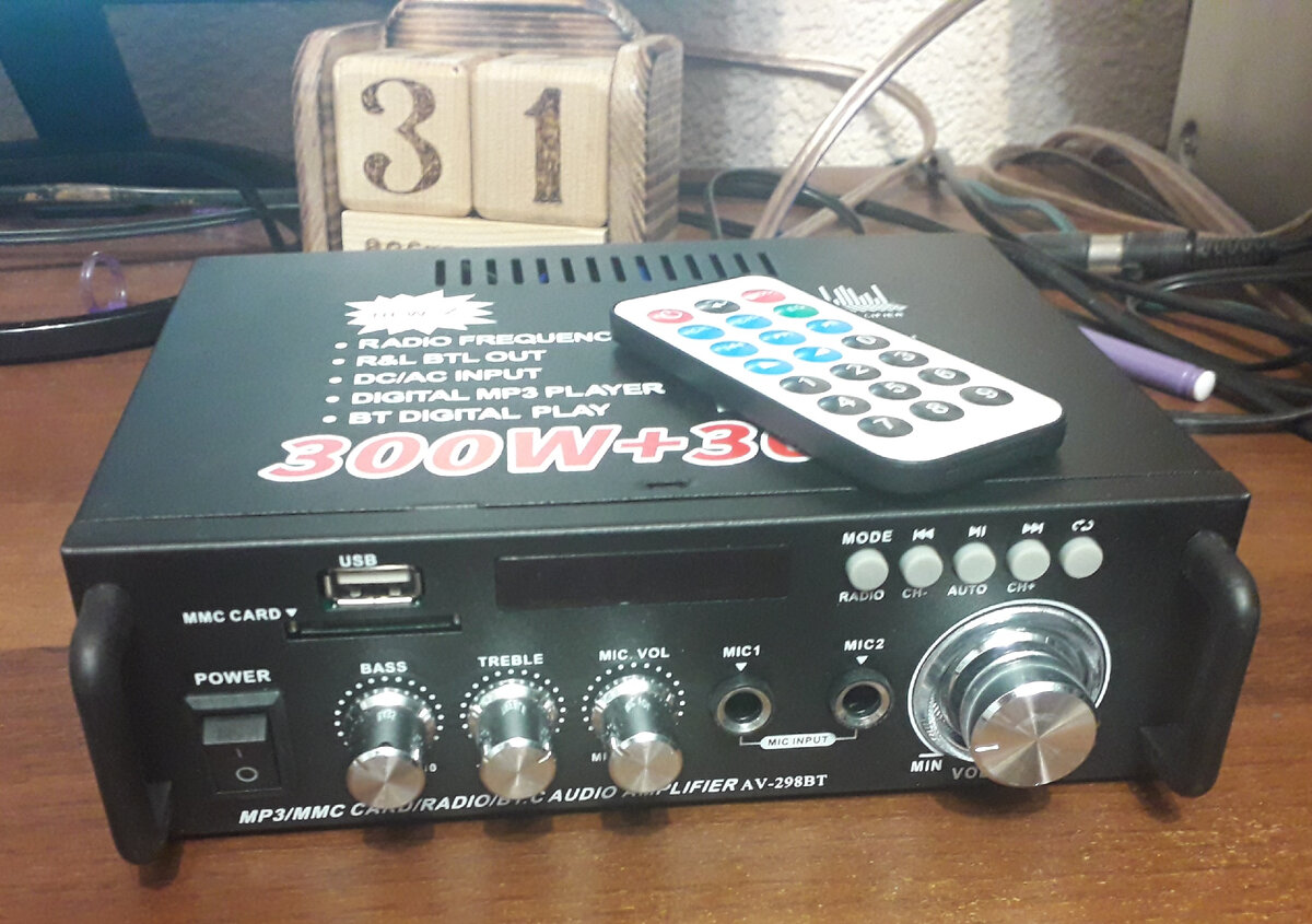 Честно, статью я написал еще перед самым Новым годом и хотел просто сегодня опубликовать. Но на празднование Нового года я отключил свой Кумир 001 от колонок и подключил этот китайский усилитель в аудиосистему. На праздник пришли гости к нам еще – родственники. Посидели, проводили старый год. Подняли бокалы шампанского под бой курантов. Всё это время шла новогодняя программа по телевидению. А вот после вручения детям подарков от деда Мороза я предложил побаловать в караоке. Благо диски принесла сестра. Да и в интернете полно караоке треков. Часа два чистого времени был практически нонстоп из различных песен. Тут и “За милых дам” Михаила Шуфутинского, “Стоп, стоп люди” Евгения Осина и детские песни от моих ребятишек. А потом еще поплясали под различную музыку – опять же от Bill Haley 50-х, Mr. President 90-х и до танцевального номера от моих дочек под музыку “Малинки, малинки” от Жанны Фриске. В общем, что я хочу сказать. Кумир 001, естественно, по качеству воспроизведения без проблем уделает китайца. Но позабавились мы с китайским усилителем на Новый год от души. И это того стоит. Так что китайский усилитель AV-298BT тоже успешно может иметь свою нишу в арсенале техники любителя музыки и песен.