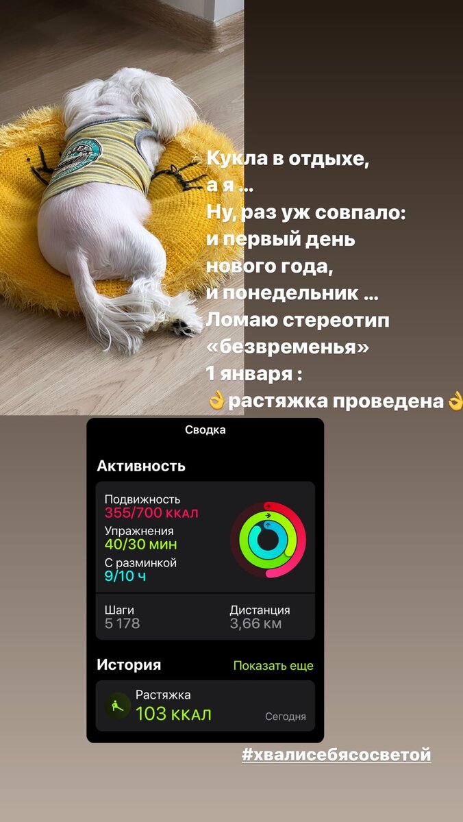 С наступившим Новым годом, друзья мои! Пусть он будет счастливым и светлым ! Я начала год с легкой растяжки😁 А как идёт ваш первый день года ? #самыйлучшийдень #первоеянваря #счастьежить
