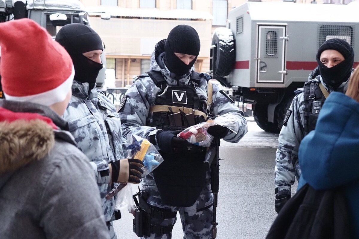 В преддверии Нового года в рамках акции «Поздравь того, кто в Новый год не дома» и «Российский детский Дед Мороз» учащиеся школы №176 Калининского района поздравили находящихся на службе сотрудников ОМОН «Бастион» Главного управления Росгвардии по г.СанктПетербургу и Ленинградской области.