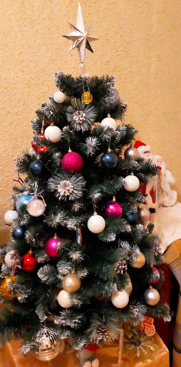 Поздравляю всех с Новым годом! Желаю в первую очередь здоровья, счастья, мира и благополучия! Новый год для меня семейный праздник. Было время, когда встречали компаниями и гуляли до утра в разных местах, запускали петарды и фейерверки в специально отведённом месте. Но теперь захотелось тишины и спокойствия, даже количество фейерверков в дачном поселке почти сошло на нет. Теперь всё по порядку. На 25 декабря обычно в квартире наряжаем ёлочку. В этом году инициативу проявил сын и практически один её и нарядил. Мы лишь установили ёлочку и повесили гирлянду. 23 или 24 декабря пеку Рождественский штоллен. Много времени не занимает сам процесс, главное на сутки замочить в роме или коньяке начинку (орехи, сухофрукты). Можно испечь на Православное Рождество, рецепт напоминаю. Пеку сразу несколько штук, один оставляю себе, 2 в подарок. Первая попытка украсить глазурью прошла не очень. Но приноровилась, Новогодний пирог уже лучше) Ближе к Новому году приезжаем на дачу, расчищаем дорожки, приво