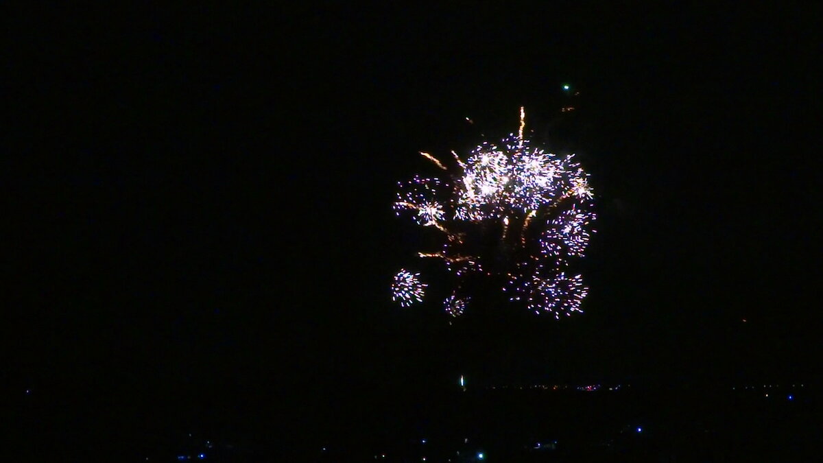 Новогодняя ночь - самое волшебное и красивое время в году. Наверное, на свете очень мало людей, которые бы не любили её и всячески игнорировали (хотя кое-кто из моих родственников в число этих людей входит). Что является кульминацией новогодней ночи? Бой курантов? Несомненно. А ещё? Тут у каждого может быть своё мнение. Кто-то скажет про обращение президента (хотя мне знакомы люди, которые в это время звук на телевизоре выключают), кто-то - про традиционный Голубой огонёк (его смотрят очень многие), для меня же кульминацией новогодней ночи, самым ярким её событием является новогодний фейерверк. У меня давно уже стало традицией снимать фейерверк в новогоднюю ночь. Нынешний год исключением не стал. Чуть позже выложу видео с наиболее интересными кадрами, а пока будут фото, точнее стоп-кадры из видео. Городской фейерверк в этом году, к сожалению, отменили, однако народ сам устроил себе праздник. Салюты запускали со всех сторон, даже на дачах на Мечётке салютовали. Вообще дачи в этом году у