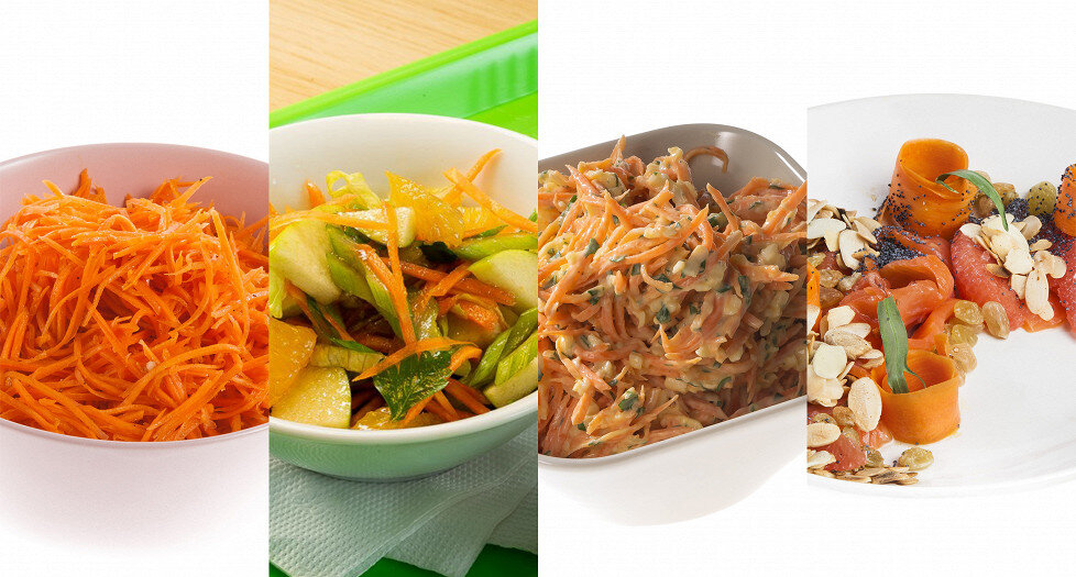 Этот материал состоит из рецептов морковных салатов: тут и простейшие образцы, и салаты посложнее, чьи рецепты мы добывали в ресторанах или у дружественных нам шефов.