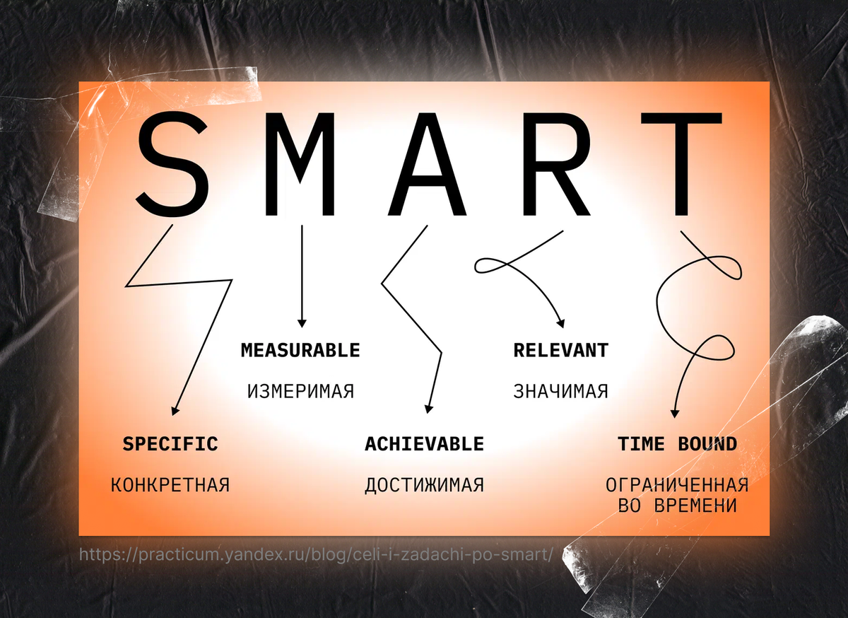 SMART — это методика постановки целей и задач в управлении. Суть методики в том, чтобы сделать абстрактные цели понятными, конкретными и достижимыми. Джордж Т. Доран, эксперт в области стратегического планирования, описал эту методику в статье в 1981 году: