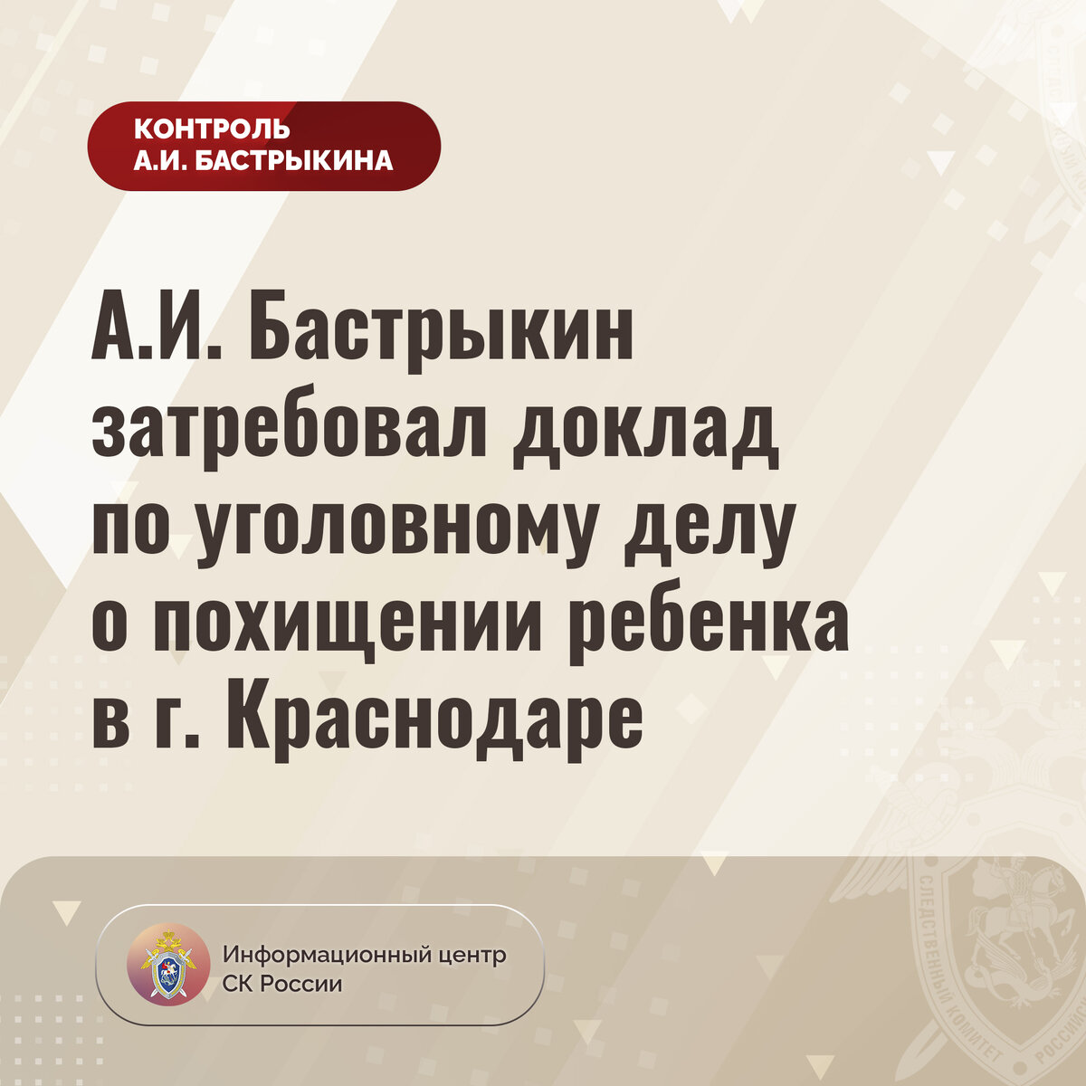 А.И. Бастрыкин затребовал доклад по уголовному делу о похищении ребенка в г. Краснодаре