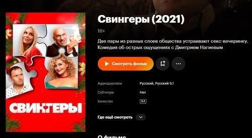 Стоит заметить — то самое кино, которое покажет нам «Первый» под названием «Новогоднее приключение», на Кинопоиске называется именно «Свингеры». То есть, то же самое, что и у «оригинала», с которого и «скатан» ремейк.