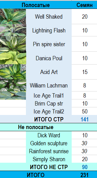 Выборка - около 230 семян хост, 141 из которых - страйки.