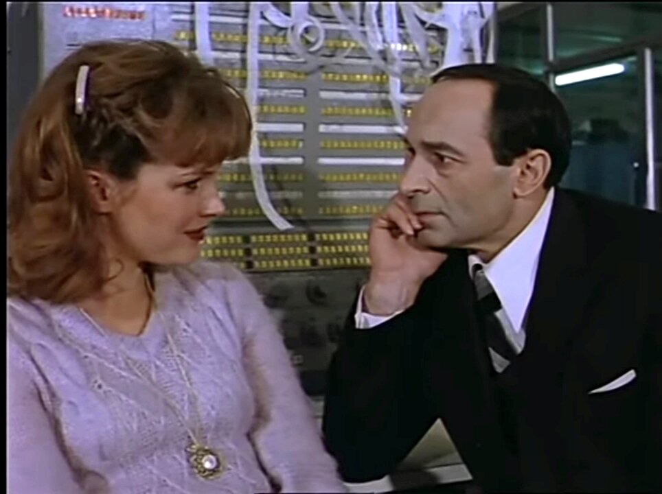 Всех-всех с новым годом! Над европейской частью страны установились лютые морозы и мы сидим по домам и смотрим любимое новогоднее кино. Так приятно повязать под старые советские фильмы. Мой самый любимый из таких это "Чародеи" и на этот раз я вдруг стала оценивать костюмы героев, а точнее вязаные вещи, в которые были одеты актёры. Сюжет фильма разворачивается в северном заснеженном волшебном городке в канун Нового года, поэтому все герои тепло одеты по моде 80-х годов. Фильм, к сожалению, не был переведён в HD качество, но, надеюсь всё будет разборчиво. 1. Мохеровый джемпер. Нежный узор и приятный светло-лавандовый цвет. Классический силуэт средней длины вполне уместен и в наше время. Материалы сейчас гораздо лучше, поэтому такой джемперок и носиться будет лучше, и к телу приятнее. 2. Мужские свитеры. Один чёрный, другой белый. Совсем не видно деталей, но связан он сверху регланом, кажется, простой лицевой гладью. Главный герой Александра Абдулова весь фильм одет в модную бе