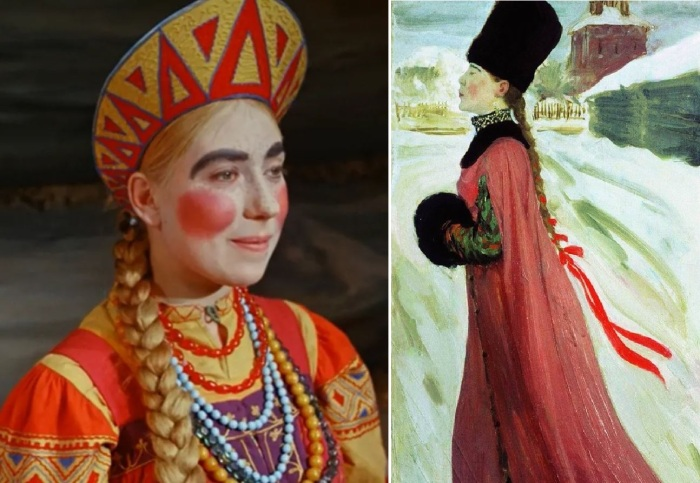 Простые деревенские девушки использовали для этого обычную свеклу. Кожу белили, как правило, обычной мукой, а «соболиные брови» рисовали углем. Вот как раз так, как было карикатурно продемонстрировано в фильме-сказке «Морозко».