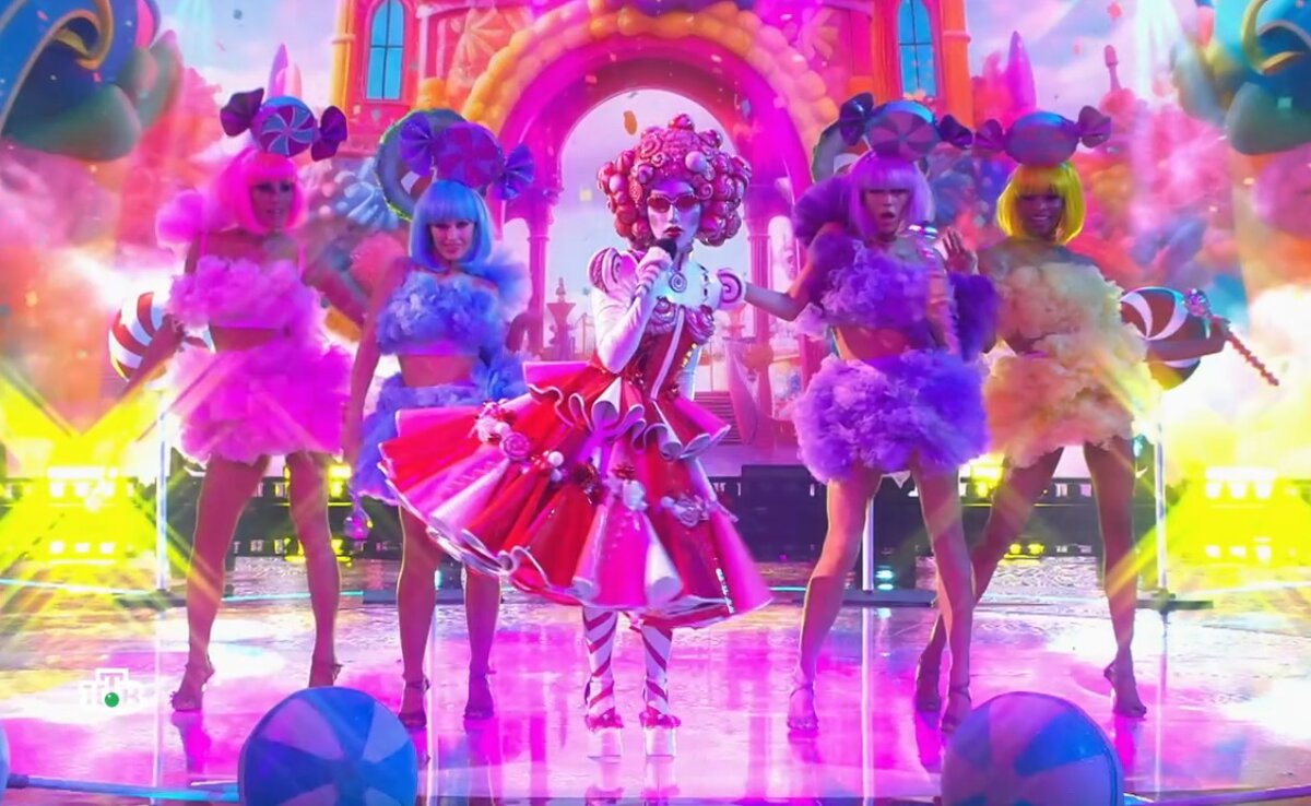 Классный костюм! Яркий, праздничный, я бы даже сказал вкусный! Лишними деталями не перегружен и даёт свободу для комфортного передвижения и участия в танцевальных постановках. Придраться можно разве что к самой маске на лице участницы – она могла не всем приглянуться. В остальном же очень жаль, что на полный сезон делают кринжовую Шаурму, а подобную годноту – выпускают на один раз! Выступала Леденец вполне неплохо. Хит Кристины Агилеры «Candyman» далеко не самая простая для исполнения композиция. Нужно было передать всю мощь вокала и нешуточную энергетику, заложенную в музыке. И участнице это удалось сделать. Было видно, что танцевать она умеет, но сдерживается. Да и с голосом – полный порядок: верхние ноты брала спокойно. Слышать и смотреть было приятно.
