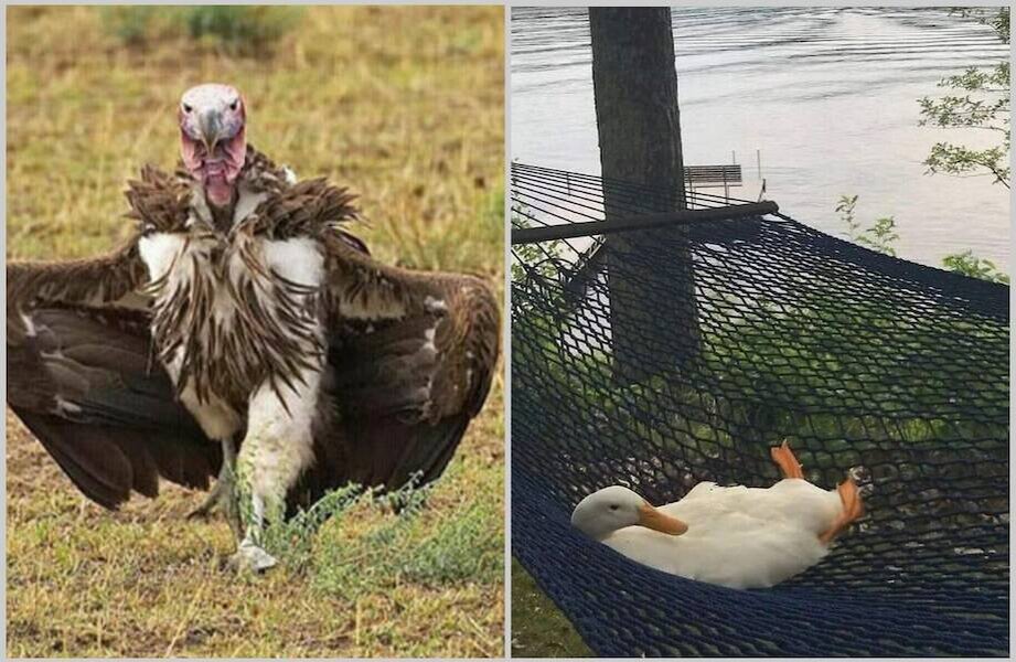 Забавные птицы, от которых случится приступ смеха. Птицы ― настоящие супергерои. Они способны летать, не боятся нападать на врагов больше себя, а иногда ведут себя так, что сразу же вспоминаешь о их родстве с динозаврами. Посмотрите, на фороракса, который в свое время наводил ужас на динозавров. Перед вами пернатые смельчаки, которые точно знают, чего хотят. Когда тебе не страшны пчелы У них любовь! Утка нашла самое странное место для гнездования Когда ходишь в раздумьях Лебедю выписали штраф Случайный кадр Модели на подиуме Иногда слишком холодно петь Когда сосед затеял ремонт, а ты после ночной смены Маленький динозавр Голубь охраняет яйца Портрет свирепого казуара Истинное наслаждение Птица выглядит устрашающе Орлов точно стоит опасаться: мы показывали самые фееричные нападения этих птиц.