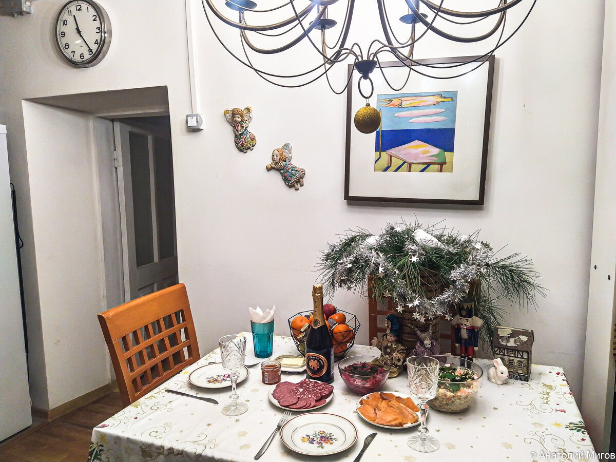 А мы и сами не очень-то и чревоугодничали. Обед у нас был плотным - Лена запекала индейку. А поздний ужин скромный. Нет, для обычного ужина он конечно был очень даже нескромным. Но бывали дни, когда такой новогодний стол вызвал бы у нас самих недоумение.