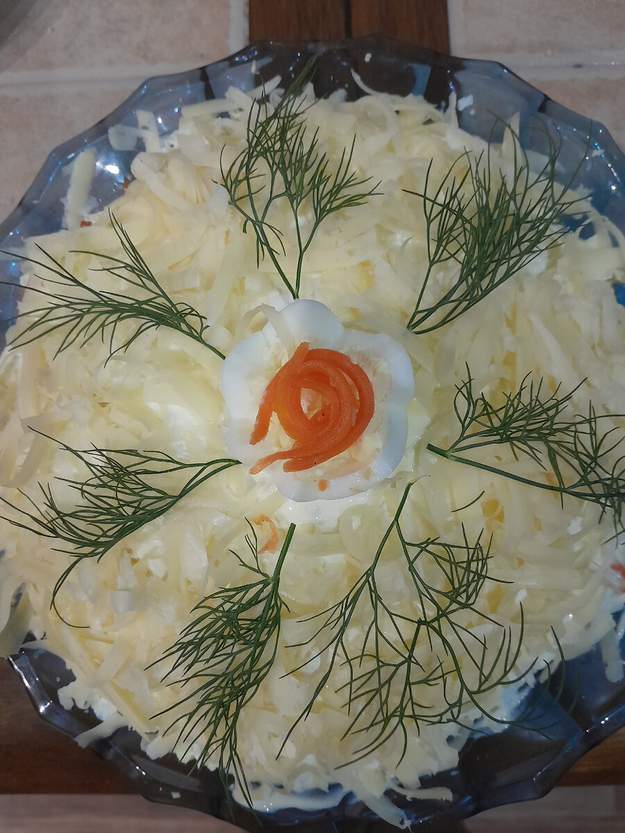 Друзья, мы обычно на Новый Год делаем 2 традиционных салата-оливье и селёдку под шубой, плюс пробуем какой-нибудь новый. В прошлом году был салат со свёклой и черносливом, В этом году решили попробовать салат "Праздничный". Компонентов много))))) Копчёная курица, жаренные шампиньоны с луком, морковь по-корейски, варёные яйца и тертый сыр. Заправка- майонез+ сметана, 50/50. Делаем слоями в том порядке, в котором написан рецепт, каждый слой промазываем заправкой. Копчёная курица. Заправка. Жаренные шампиньоны с луком. Морковь по-корейски. Варёное яйцо, заправка, тёртый сыр. Вкусно, необычно, на мой взгляд чуть сладковато, но такого вкуса нам досталась морковь по-корейски, если морковь будет чуть острее, вкус салата изменится. Понравилось ли? Да, определённо! Будем ли мы его ещё делать- если только на Праздник!!!!! Салат был присмотрен на дружеском канале Блог_Ланы! За что ей-огромное спасибо!!!!!! Была немного изменена заправка. Всем-приятного аппетита!!!!!! С уважением, Татьяна и Ни