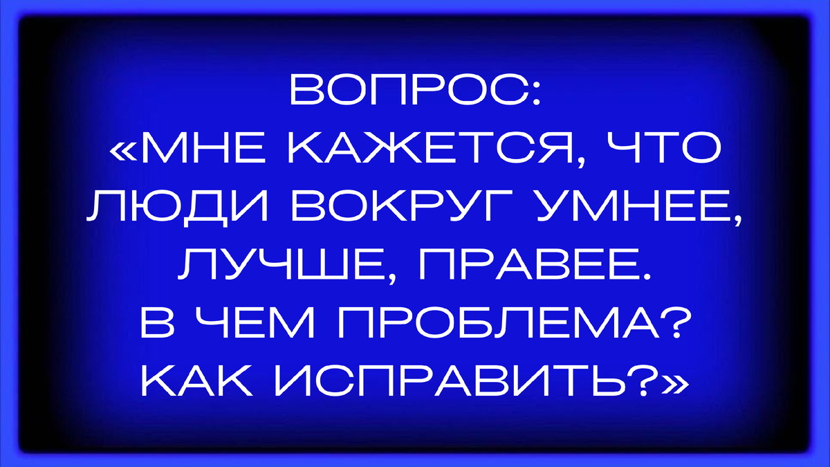 Мне кажется, что люди вокруг умнее, лучше, правее. В чем проблема? Как исправить?