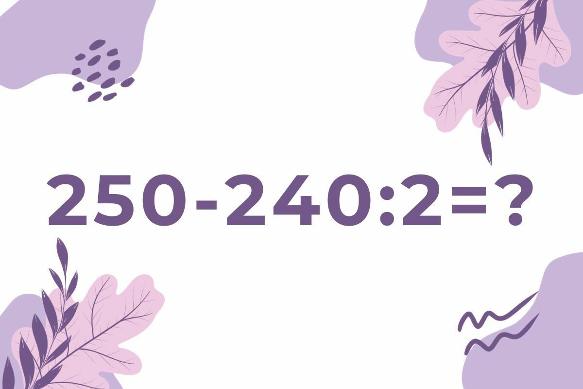Мы очень часто забываем, что мозг нуждается в такой же тренировке, как и другие части тела. Стоит время от времени стимулировать его различными головоломками. Например, попробуйте решить простое уравнение из учебников для начальной школы Ответ на него не так очевиден, как может показаться на первый взгляд, поэтому и разделяет взрослых на два лагеря. А вы справитесь? Читайте также: Как правильно покупать комнатные растения зимой? Обязательно сделайте эти три вещи Такие тренировки для мозга обычно даются нелегко, поэтому многие бросают их в самом начале. Однако не стоит торопиться. Просто возьмите в руки лист бумаги и ручку и попробуйте правильно решить задачу: 250 — 240 : 2. Вы уже знаете, с чего начать? Тренировка мозга с помощью решения простых уравнений имеет важные преимущества. Например, развитие логического мышления, улучшение математических навыков, развитие творческого мышления, подготовка к будущей карьере и улучшение памяти и концентрации. В этом уравнении есть две операции —