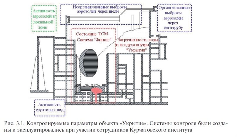 И всё же некоторые выводы можно сделать. Во-первых, данные системы мониторинга верно отразили динамику выброса радиоактивных аэрозолей. Во-вторых, масштабы выброса зависят от целого ряда техногенных и природных факторов – осадков и метеоусловий на промплощадке, разностью температур внутри и снаружи Укрытия, характером и интенсивностью работ на объекте и др. В-третьих, стало понятно, что эти факторы хоть и маскируют зависимость выбросов от состояния ТСМ, однако при серьёзном изменении их состояния это бы обнаружили.
