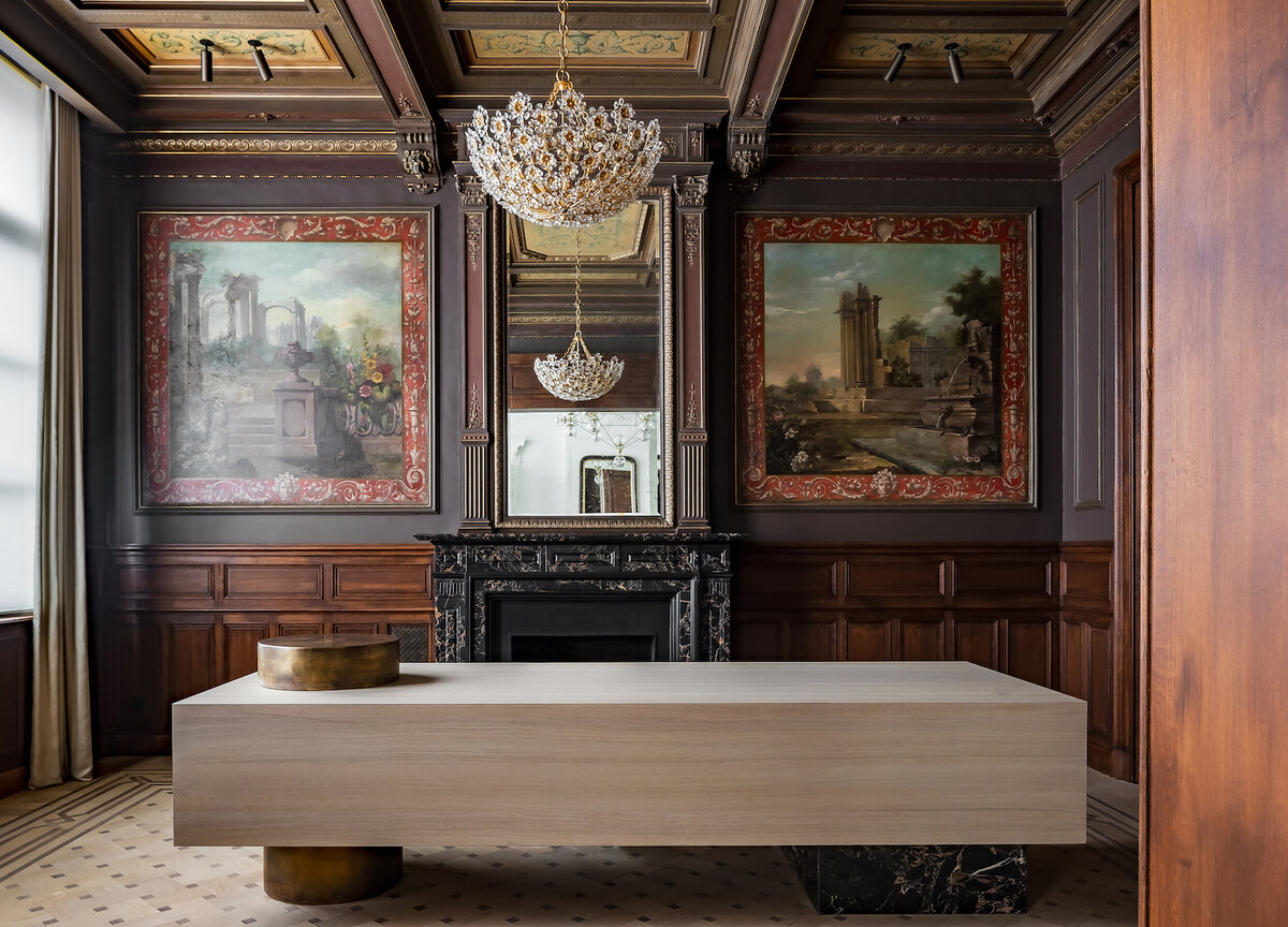 Возвращаемся к вещанию и начнем с воздушного и невероятно красивого проекта — это старинный дом в Брюгге, отреставрированный архитектурным бюро Simon de Burbure Architects. Фотограф: Thomas De Bruyne Здание было построено еще в XVII веке, но в 1880-е годы его сильно переделали — в наследство от тех времен остались пышные декорации первого этажа. Прежняя хозяйка долго жила тут в одиночестве, дом ей был великоват, и многие комнаты годами пустовали. Так что интерьерам потребовалась основательная реставрация, которая заняла пять лет. Шутка ли дело — одних только каминов здесь двенадцать штук, и каждый требовал индивидуального подхода. Сильнее всего от времени и забвения пострадала стеклянная пристройка. Ее оригинальный пол из мозаики и терраццо вздыбился на тридцать сантиметров из-за разросшихся корней. И если мозаику удалось по большей части сохранить, то терраццо пришлось заливать по новой. Чтобы все было честно, Simon de Burbure Architects сделали это в точности так же, как мастера по
