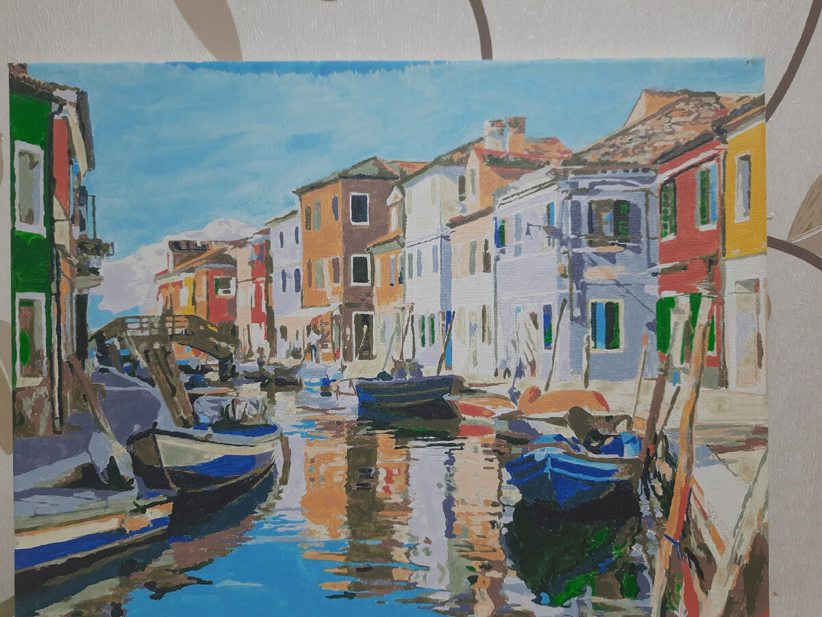 В прошлом году мне подарили расскраску по номерам. В этом году Тайный Санта тоже мне принёс расскраску. За год руки не доходили. Но вот исправилась и сделал первую картину. Оказалось, что это весьма сложный процесс. Очень много мелких деталей, которые непонятно каким цветом расскрашивать. Кисточки слишком широкие, а руки у меня из места ниже спины и совершенно не заточены под рисование, да еще и красками. Короче, я там потом начала импровизировать и мешать цвета: не страшно, если вместо одного другой использую. Я ж для себя. 😁 Осложнялся процесс и тем, что некоторые краски почти высохли. Как только я их не разводила, но все равно не смогла реанимировать. Цвета вышли некрасивые, водянистые и ощутимо отличаются от густых красок текстурой, цветом и насыщенностью. Долго я мучилась, но опыт бесценный. Мне понравилось больше, чем нет. Сразу начну и вторую картину, пока краски тоже не засохли, а кисточки в приличном состоянии. Хотя я их тоже успела подстричь - разлохматились. На новой карт