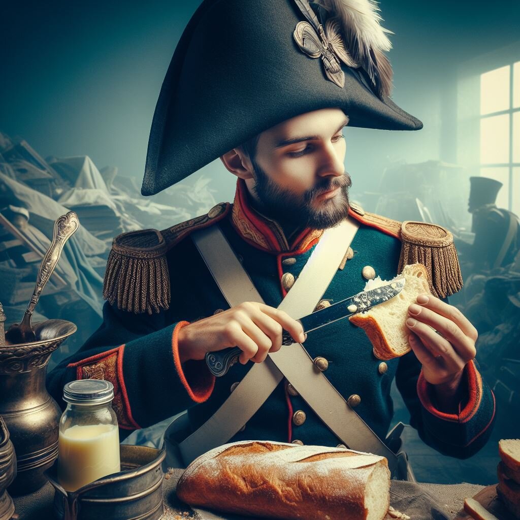 В 1869 г., накануне войны с Пруссией, Наполеон III посчитал, что солдат в его армии много, всех надобно кормить, а это весьма расточительно для казны. Потому он обратился к ученым мужам Франции с просьбой облегчить императорское бремя и найти более дешевую замену, скажем, хотя бы сливочному маслу. Император попросил, ученые мужи откликнулись. Французский химик Ипполит Меже-Мурье решил: «Буду смешивать нагретый животный жир с молоком!». На поверхности варева образовывались блестящие жирные шарики. «Жирный жемчуг же – олеомаргарин!» – подумал Ипполит. Когда варево застывало получался продукт, напоминающий по консистенции и вкусу масло. Так был получен первый маргарин. В наше время маргарин делают из смеси растительных и животных жиров, которые эмульгируют в водном растворе. Это означает, что жиры разбиваются на мельчайшие капельки, которые равномерно распределяются по раствору, не смешиваются с ним и между собой. Проблема состоит в том, что, если мы хотим получить продукт больше похо