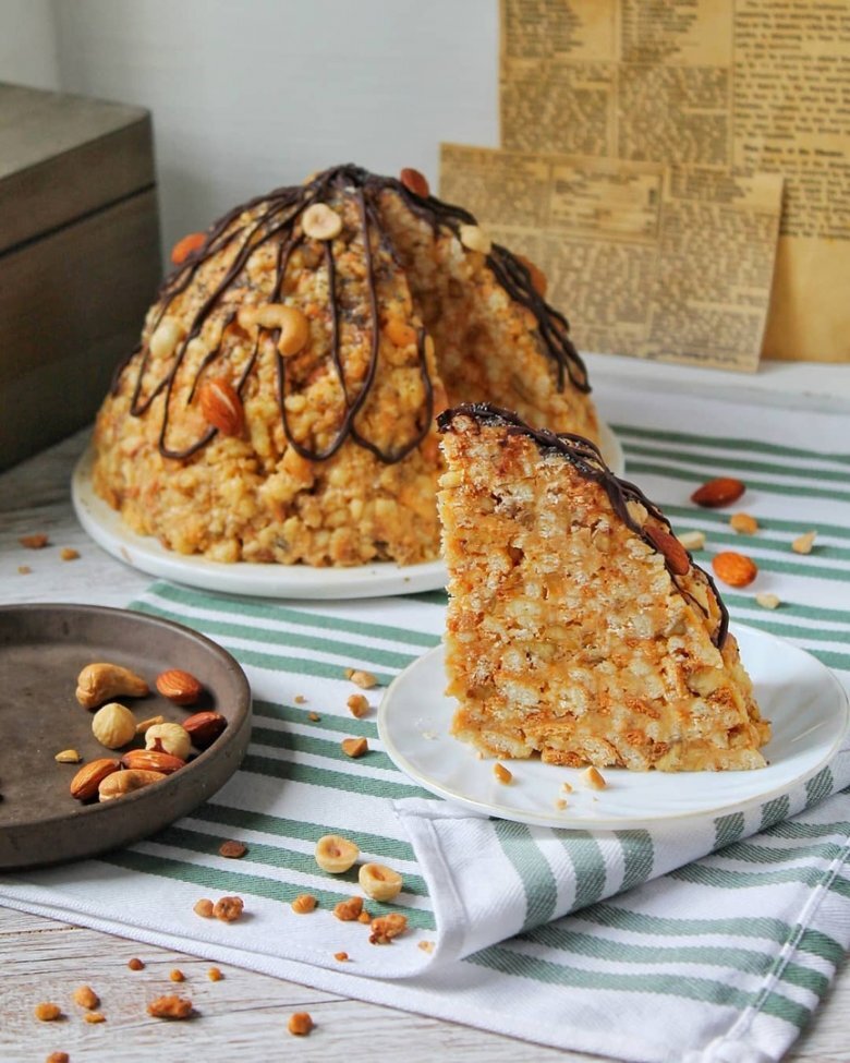 – 200 грамм сливочного масла Приготовление торта «Муравейник»: Также можно добавить по вкусу любые орехи или мак, полить растопленным шоколадом. Приятного аппетита!