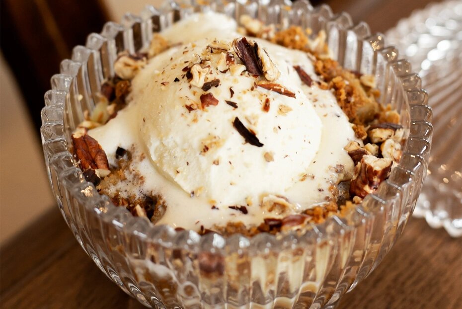 8.При подаче подогреть яблоки, сверху посыпать имбирным печеньем.