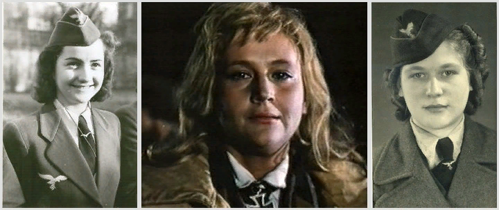 Разумеется, в Германии были женщины-лётчицы. Самая знаменитая из них, безусловно, Ханна Райч, единственная лётчица, награждённая Железными крестами 2-го класса (28.03.1941) и 1-го класса (05.11.1942). Широко известна также другая летчица-испытатель графиня Мелитта Шенк фон Штауффенберг, урождённая Шиллер и, кстати, наполовину еврейка по отцу, награжденная Железным крестом 2-го класса (22.01.1943) и «Золотым знаком летчика с бриллиантами». Лётчиком-испытателем работала и Беата Ротермунд-Узе, урождённая Кёштлин, правда, больше всего она прославилась уже после войны в качестве предпринимательницы, создав популярнейшую сеть секс-шопов. Женщинами-пилотами были также Лизель Бах, Элли Мария Фрида Роземейер, урождённая Байнхорн, Вера фон Биссинг, Терезия «Теа» Кнорр, урождённая Райнер, Элизабет «Лизл» Мария Шваб, баронесса Трауте Франк фон Гаузен-Аубир, урождённая Гофман, Элеоноре Витте и другие. Некоторые из них, как уже говорилось, были испытателями, кое-кто летал на легких самолетах связи или транспортных самолетах, другие в годы войны занимались перегонкой новых и отремонтированных самолетов на авиационные базы и во фронтовые соединения. Однако ни одна из всех этих лётчиц не входила в состав боевых частей, не участвовала в боевых действиях и, тем более, не сбрасывала бомбы на беззащитные города, и не расстреливала детишек. Лишь две лётчицы (вышеупомянутые Райч и фон Штауффенберг) получили боевые награды, да и то - исключительно за заслуги при испытаниях новой авиационной техники. Ни одна из лётчиц не имела даже воинского звания, лишь в некоторых случаях им присваивали гражданское звание командира самолёта (Flugkapitаn). Кстати, кандидатами на такую должность могли быть только авиаторы старше 30 лет, прослужившие в авиации не менее 8 лет, из них непосредственно 5 лет в воздушных перевозках, плюс налетать не менее 500.000 километров в качестве пилота.