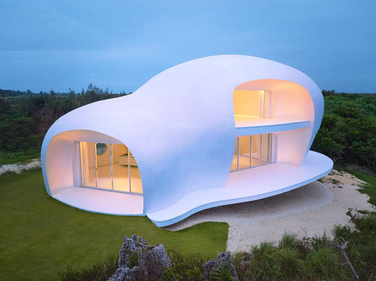 Мои прогнозы всегда точны. Титаны тяжелого искусства заходят в архитектуру - пока архитекторы сохраняют своё консервативное общество и продают заказчику вчерашний день оформленный в штампы по ГОСТ - и говорят новое яркое и звонкое слово. Этот дом спроектировала бывшая модель, модельерка, художница, а теперь, видимо, и архитекторка - Марико Мори. Наберитесь терпения, придет время и про ее искусство в наивысочайшем исполнении расскажем, а пока поговорим о зефире... Дом расположен в Японии, на острове Мияко. Скульптурная форма, вид на океан, отсутствие соседей - все говорит о высшем понимании комфорта и ценности момента. Дом больше не является пещерой, это произведение искусства, украшение окружающей среды, маркер обозначающий ценность человеческой жизни, интеллекта, достижений науки и техники. Вот и сама Марико вышла прогуляться. Чувствуете легкий соленый бриз с океана? Слышите как поют цикады в мангровых зарослях? Волна бьет о песчаный берег; каждое мгновение наполнено покоем и безмяте