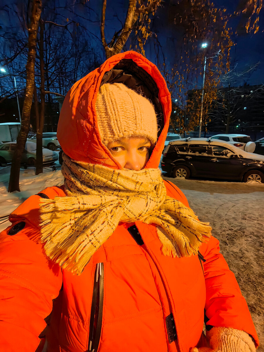 Нам морозы не страшны... Хотелось мне так хотелось написать, но это не правда. Вчера у меня началась аллергия на мороз. Днем ездили по магазинам, я надела термобелье и джинсы утепленные, коленки были прохладными, когда приехали домой. Вечером после душа меня накрыл зуд, на ногах ниже колена была сыпь, они чесались. Приняла таблетку от аллергии, мазала кремами, долго пыталась заснуть. Утром уже все было с порядке, поэтому гулять с собакой пошла в утепленных штанах и в полукомбинезоне на синтепоне. Было тепло, но продувались только рукава у пуховика. Я была в термобелье теплом и в кофте с искусственным мехом. Очки я не могу носить, сразу запотевают, но не так они и нужны, если только искать в сугробе потерявшиеся тапочки Геры. В этот раз мы сапожки не потеряли. Гера даже потянула меня на бульвар, но потом передумала. Вообще она такая хитрая, опыт манипулировать хозяйкой приходит с годами. Вот так я Герочку одеваю. Она будет лежать и не шевелиться, пока я ее на лапки не по