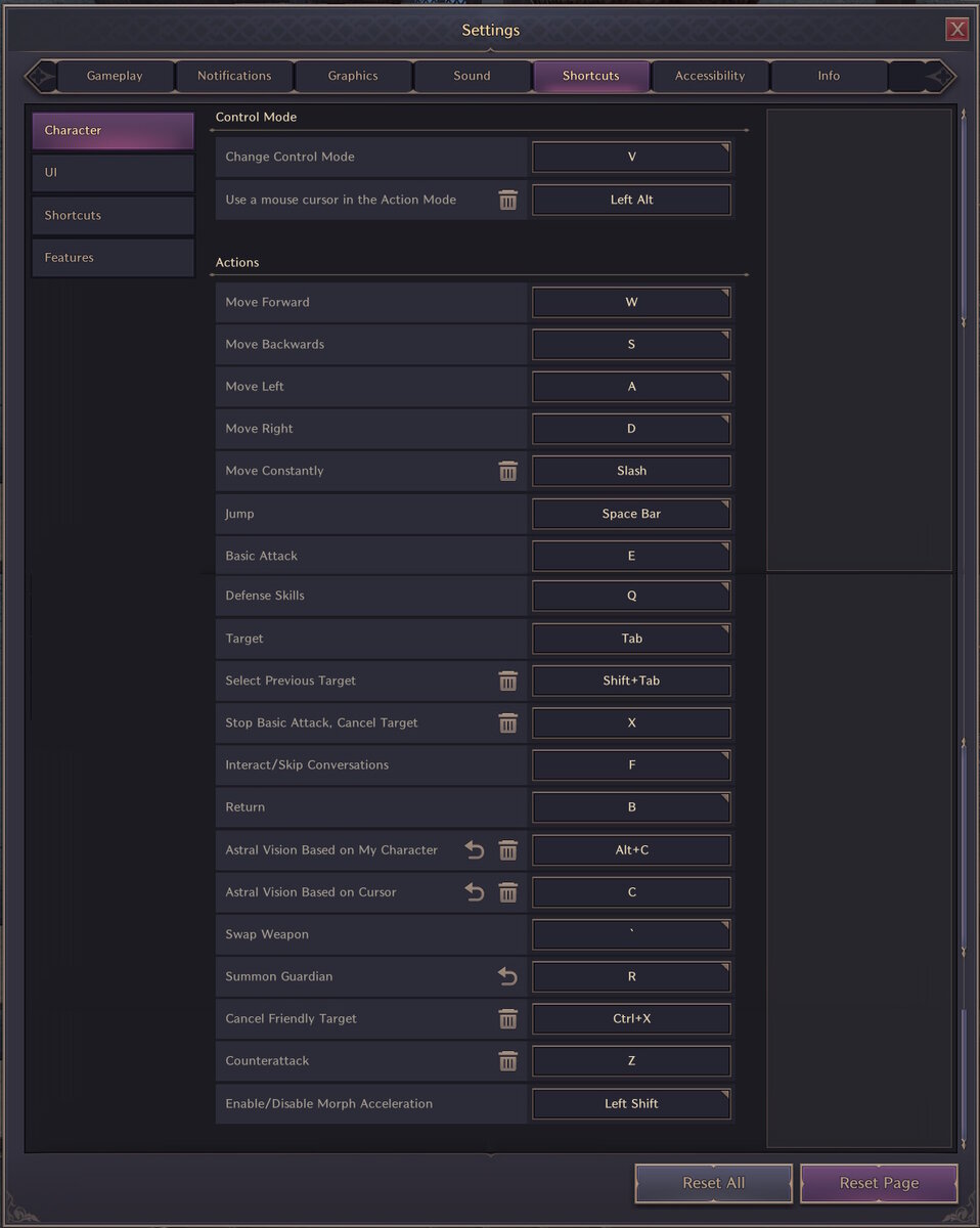 Throne and Liberty горячие клавиши