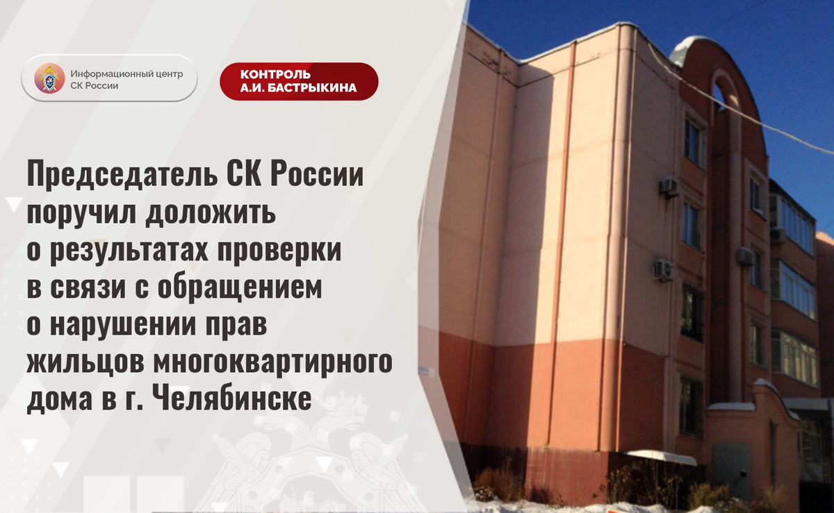 Председатель СК России поручил доложить о результатах проверки в связи с обращением о нарушении прав жильцов многоквартирного дома в г. Челябинске
