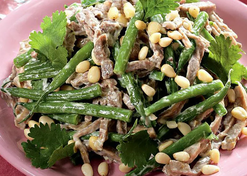 Нарезаем ножом на разделочной доске небольшими кусочками говядину, лук, грейпфрут и фасоль. Все нарезанные ингредиенты складываем в миску. В отдельной миске смешиваем, оливковое масло, яблочный уксус, соль и перец. Этим соусом заливаем салат, смешиваем лопаткой и отправляем на полочку в холодильную камеру на 30 минут. На дно салатницы выкладываем промытые листья зеленого салата, а сверху охлажденный салатик, который уже готов к подаче на застолье. Украшаем у кого какая фантазия, можно веточками укропа с петрушкой или дольками мандаринок. Приятного аппетита! Подписывайтесь на мой канал, чтобы каждый день по