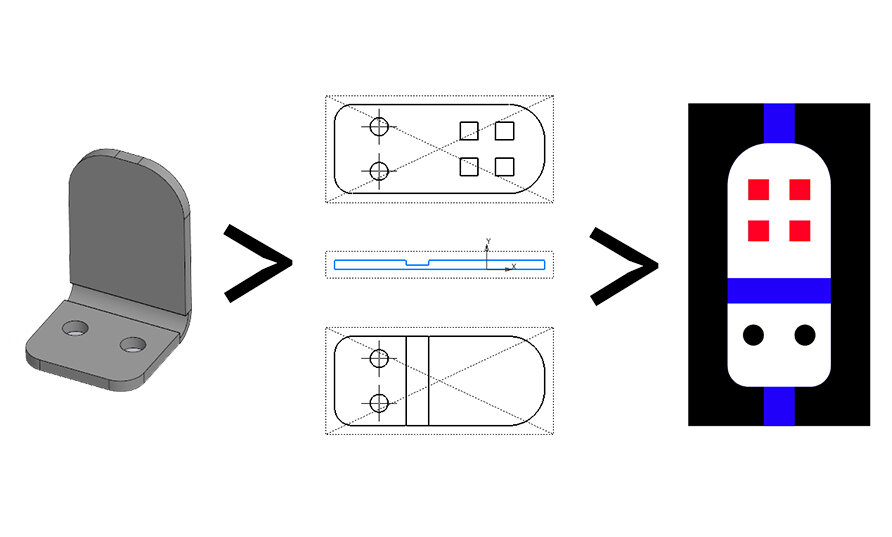 - Пересортируем слои, перекрашиваем полигоны, отражаем одну из проекций, совмещаем две проекции в одну, рисуем фон и перемычки.