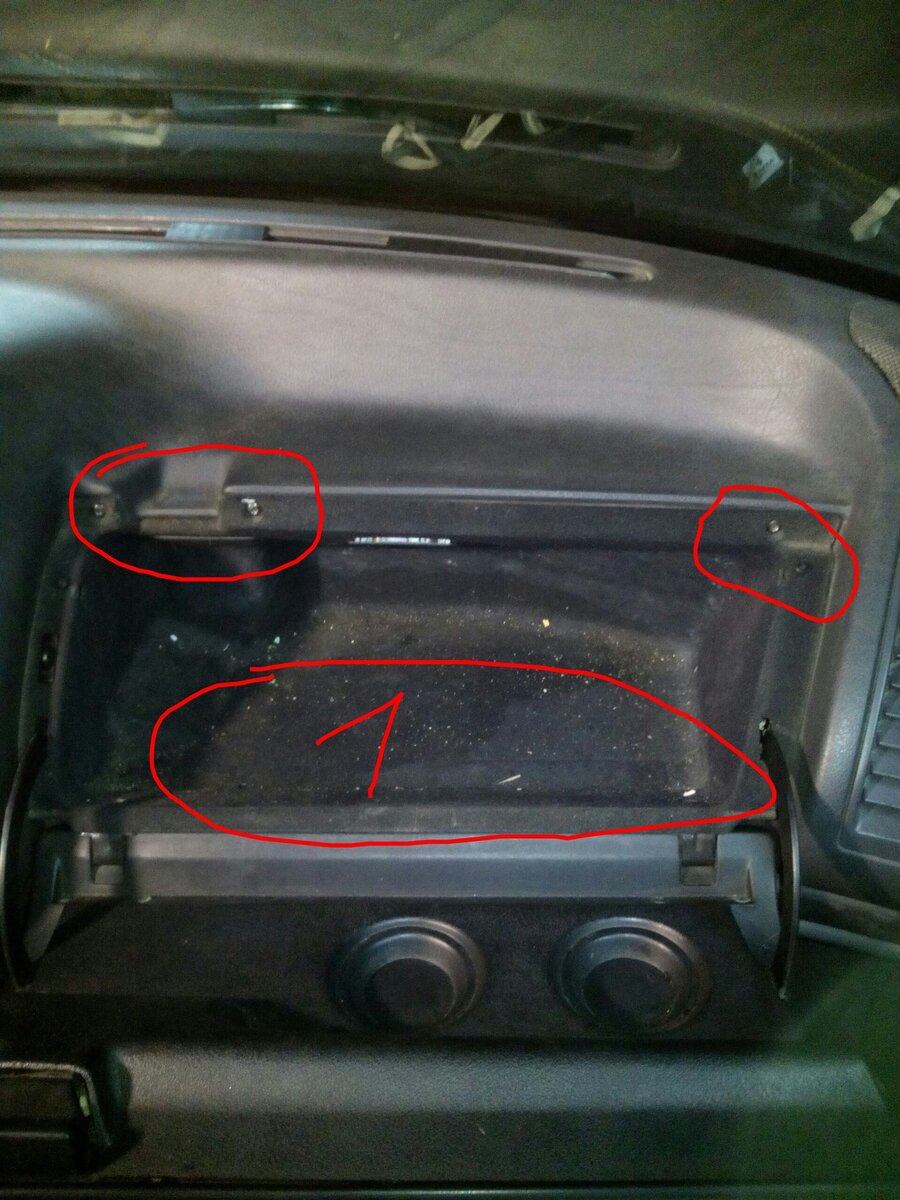 Всё легко и просто! Вам понадобится набор звездочек и пара отверток. Смотрите, на фото в верхней части бардачка четыре шурупа. А в глубине бардачка, так сказать на его дне, имеется хорошо скрытая полость, она обведена под номером 1. Её нужно открыть аккуратно. Вот, открыта это полость и в ней ещё три шурупа. После того, как все шурупы открутили, начинаем потихоньку тянуть бардачок на себя, но без фанатизма. Потому как вот эти провода могут быть прищелкнуты к корпусу печки. Аккуратно отодвинули, разъединили разъемы и готово. Ну вот как бы и всё. Всё просто. На этом всем добра и до свидания.