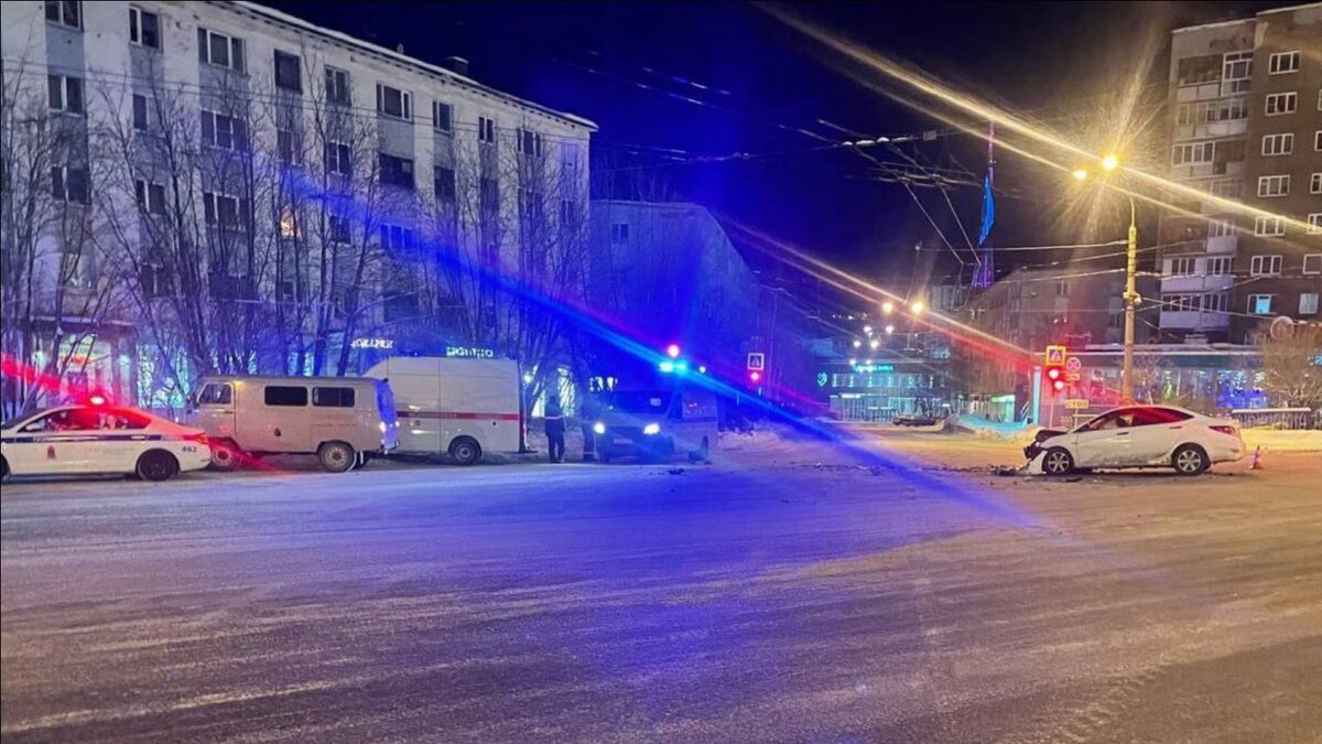 Как сообщили в Госавтоинспекции Мурманской области, «Хендай» пытался проскочить на запрещающий сигнал светофора и влетел в автомобиль скорой помощи.