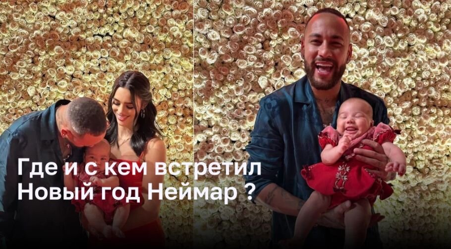 Известный бразильский футбольный нападающий Неймар встречает новый год на родине и со своей новорождённой дочерью Мэви. Девочка родилась в октябре и вот недавно 2 месяца. Руководство саудовского футбольного клуба «Аль-Хилаль» предоставило отпуск футболисту, чтобы навестить дочь и её маму, известную бразильскую модель, Бруну Бьянкарди. Неймар был женат несколько раз, имеет сына Давида Лукку от первого брата. Рождение второго ребёнка несомненно доставило радость одному из лучших футболистов планеты. Помимо семейных торжеств, игрок также видится с друзьями в родном Сан-Паулу, гуляет по родным улицам и вновь ощущает атмосферу родной страны. В своих социальных сетях Неймар так прокомментировал свой новогодний отпуск: рождество в кругу семьи! Твоя улыбка и радость на фотках Любовь к тебе навсегда, принцесса! Неймар один из лучших нападающих в современном футболе, бывший игрок футбольных клубов Барселона и ПСЖ. Также Неймар является лучшим бомбардиром сборной Бразилии по футболу за всю истор