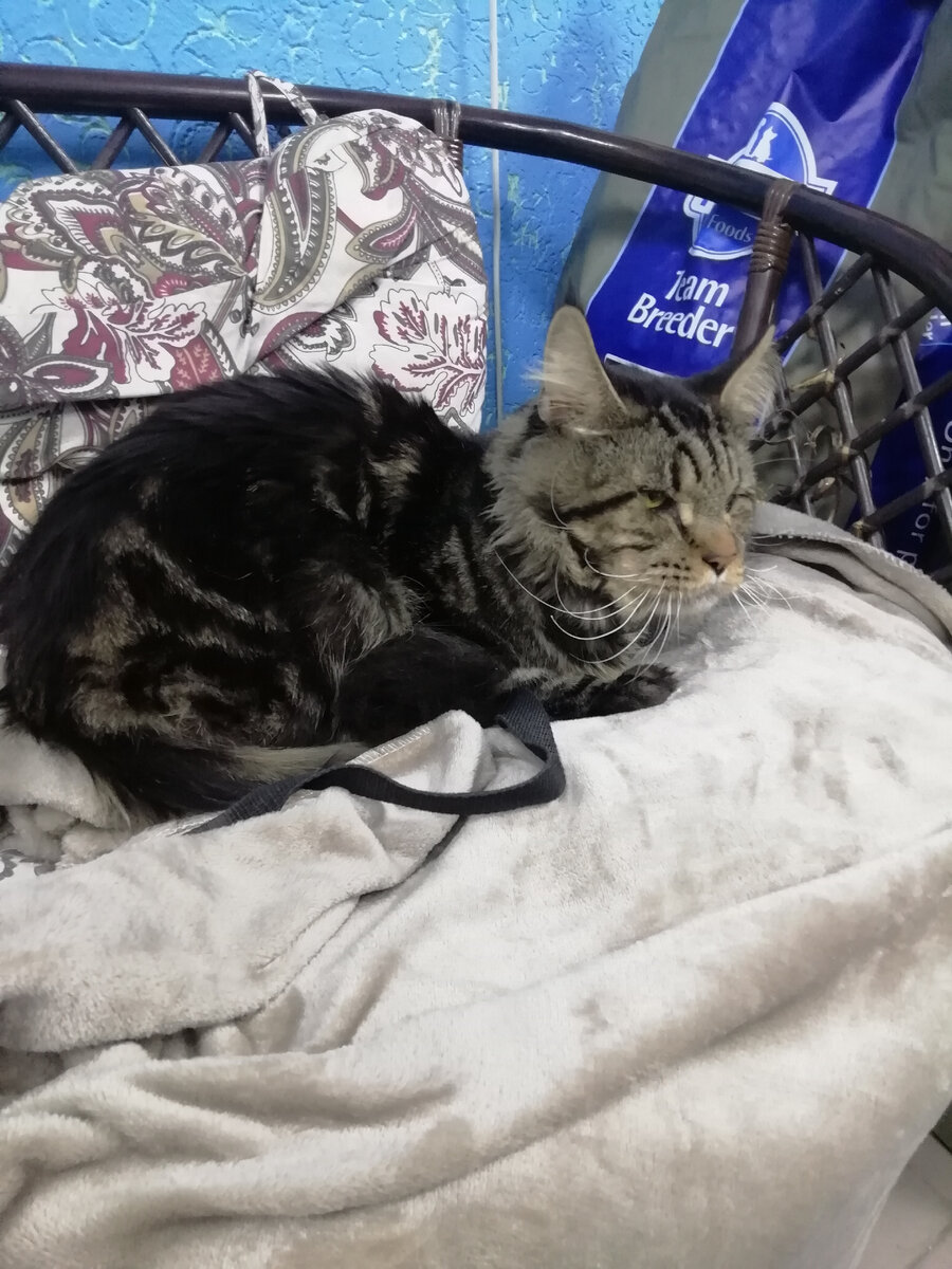 3.01.24. Балаково Моя передержка В добрые ручки. Мей кун Сэм, кастрат, возраст , примерно, 6 лет. Очень крупный, тяжёлый, добрый котик. В туалет ходит в лоток без наполнителя. Ласковый, но тискать себя не позволяет. Прыгает как слон. Кушает много. Совершенно здоров. Котят любит , они его тоже. С котами дружбу не водит, но и пераым драку не затевает-игнорирует. Пристраивается в ответственные ручки с дальнейшем отслеживанием судьбы. Без самовыгула. Выбирая котика такой породы, вы должны учитывать его размеры - это не собака, он будет прыгать по верхам или сделать ему личную полочку, где он будет лежать и наблюдать за вами. У таких котиков часто бывает аллергия, поэтому кормить со стола остатками не рекомендуется. У меня ест сухой корм и мясо, которое очень любит. Как к детям относится - не знаю Мои дети выросли. Пишите, звоните 89279104567 Валерия (не для переводов!!!) Личная страничка #балаково_мейкунволкова