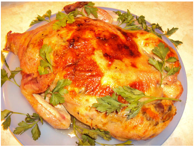 Приготовленной смесью начиняется куриная кожа, ее края соединяются и фиксируются с помощью зубочисток, и заготовка помещается в духовку, при температуре 200 градусов, на 1 час. Курица, запеченная по-особому Ингредиенты: