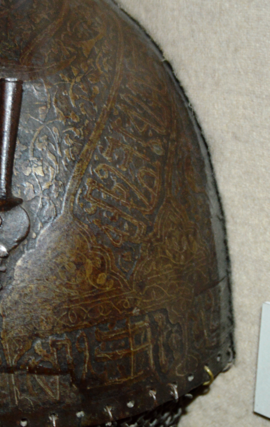 Шлем Ивана Грозного с арабской вязью говорите? А вот как вам шлем в русском музее на непонятном языке?