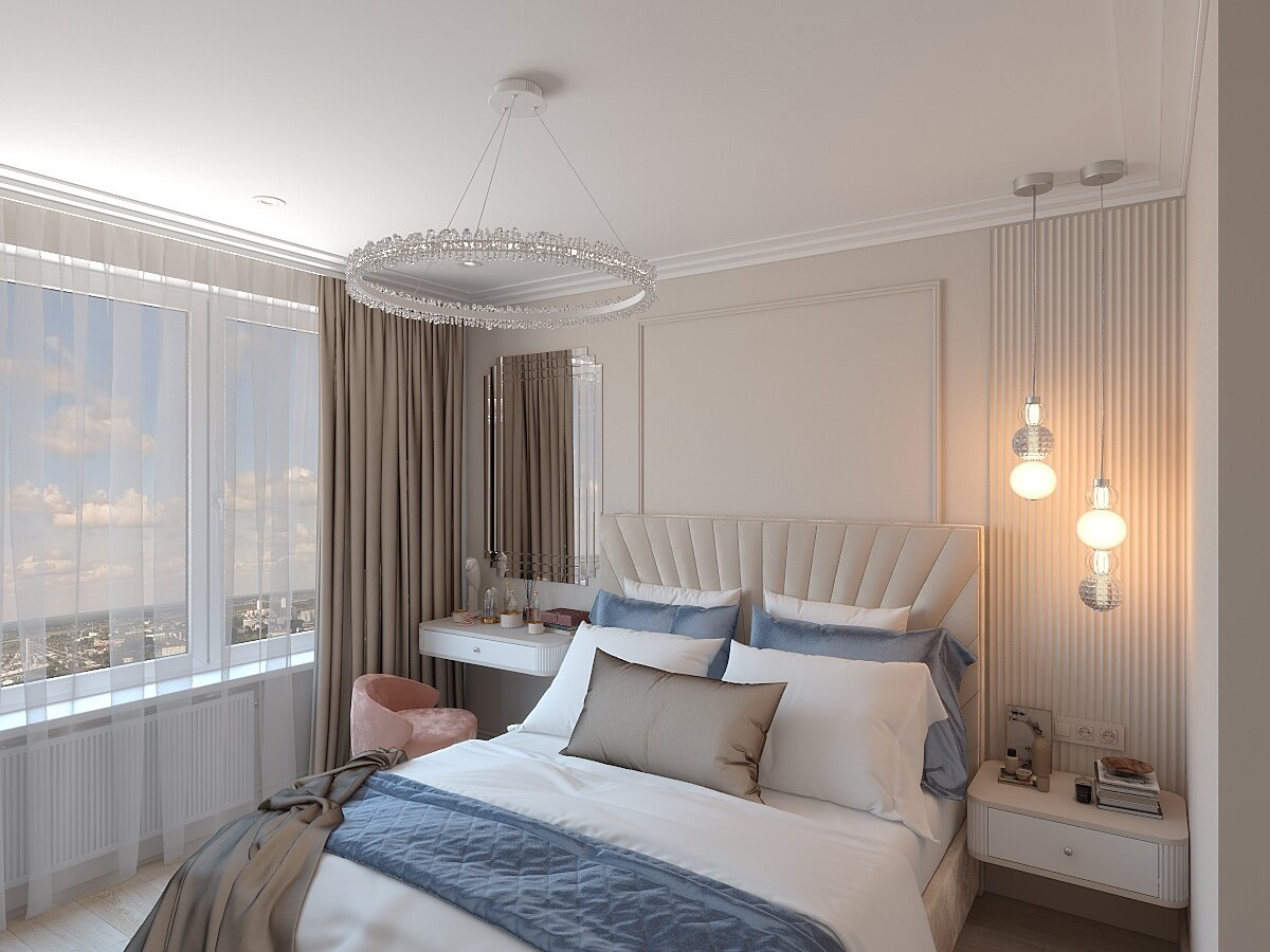 Дизайн интерьера спальни и гардеробной ЖК "Новин" г. Тюмень