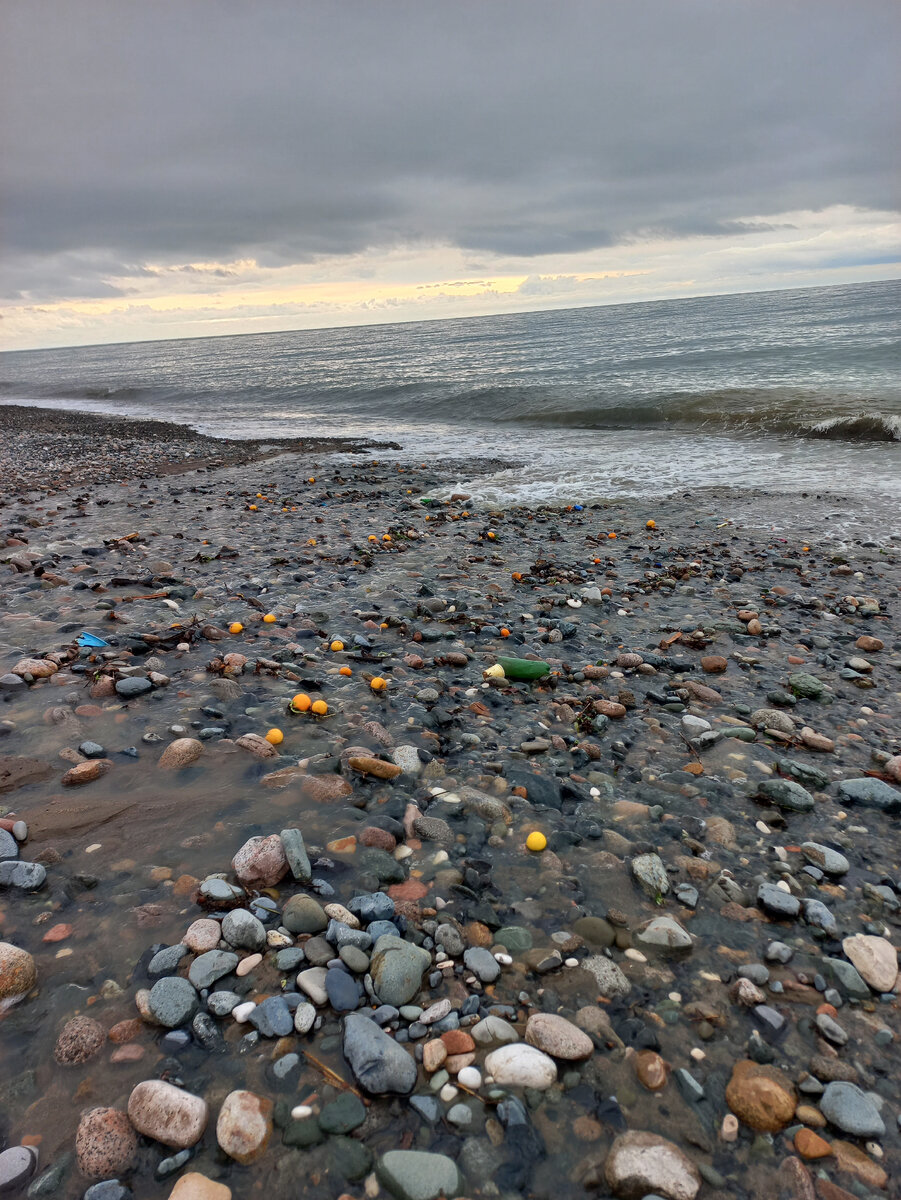 Ночью был дождь - настоящий ливень. Даже несколько раз просыпалась от его шума. День начался пасмурно. Ехать никуда не захотелось, я осталась дома и днем просто пошла погулять к морю. Было на удивление тепло. Хоть и сыро, но без ветра и очень хорошо. На море небольшая волна. Я пошла вдоль берега и дошла до небольшой речушки, которая перегораживала нам всегда путь. В месте впадения в море она разливается и становится очень мелкой, мы обычно переходили ее спокойно. Но сейчас, после ливня, она стала более полноводной. И хоть глубокой ее не назвать, но перейти, не зачерпнув воды, не получилось бы. Но более интересным оказалось то, что вдоль русла речушки были разбросаны апельсины. Сезон сбора апельсинов еще не начался (хотя мы их уже едим, очень вкусные), поэтому вряд ли кто-то выбрасывает излишки, как мы это наблюдали в разгар сбора мандаринов. Наверно, где-то вверху по реке дождем сбило плоды и кто-то лишился урожая. Зато коровам радость. Они уже как раз уходили от реки, поэтому сделать