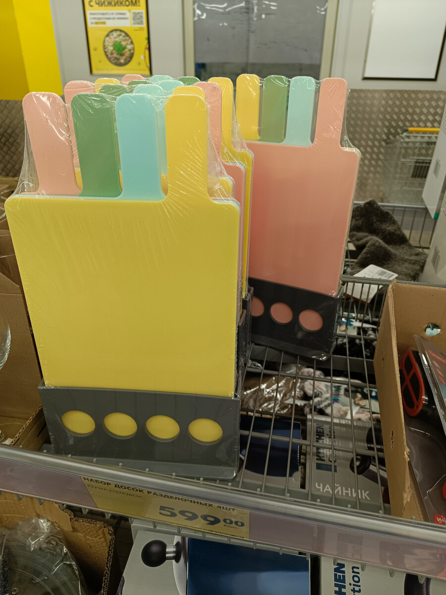 Хозяйственный отдел в "Чижике" постоянно обновляется и появляются очень интересные и полезные товары. Бытовая техника, игрушки, одежда и кухонная посуда, всегда есть в продаже по приятным ценам. И в этом обзоре, делюсь с вами увиденным в "Чижике" города Крымск. Набор пластиковых разделочных досок из 4 штук разных цветов в подставке. Цена 599 рублей. Стеклянный стакан с двойными стенками для чая, кофе и других напитков, объёмом 300 мл. Цена 199 рублей. Современный тостер мощностью 700 ватт, с 6 режимами нагрева и автоматическим отключением. Цена 999 рублей. Силиконовая форма для запекания разных цветов, размером 23х13 см. Цена 199 рублей. Универсальная стеклянная крышка с силиконовым ободом, для сковородок диаметром 24-28 см. Цена 349 рублей. Стеклянный бокал для вина на тонкой ножке, объёмом 445 мл. Цена 99 рублей. Детские носки ярких цветов, размеры 13-14. Цена 89 рублей. Игрушечные модельные автомобили разных марок в прозрачном боксе. Цена 99 рублей. Мягкая подушка с позитивным принт