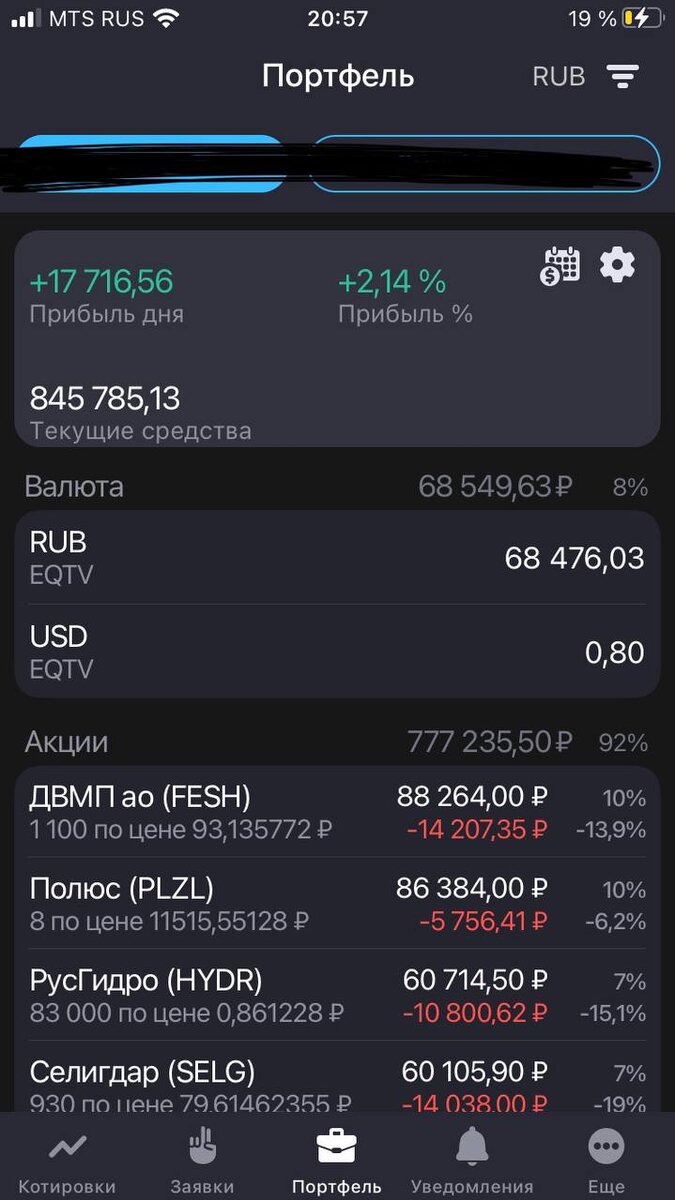 Настроение пока не очень рабочее – много расписывать не буду. Просто продолжаю работать с портфелем по стратегии активного инвестирования.