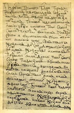 7. Далее оф перевод говорит, что Никита Голый обращается к черни и «голытьбе». В учебнике более скромно написано «голоТва», от этой голотвы и производят голытьбу маргинализируя письмо атамана. На самом деле надпись читается как «голова» или «головы».