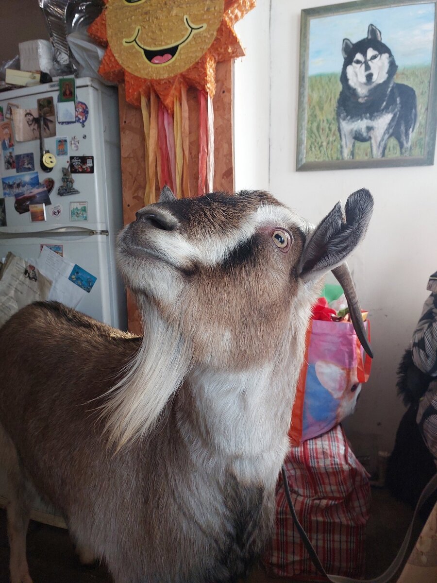 Выкопать себя из-под множества слоев одежды, потом закопать себя в них обратно… Сегодня я не раз сталкивалась с такими задачами. Но если бы ими все и ограничивалось, было бы еще ничего. Ужасно холодный день изрядно добавил нам хлопот в и без того совсем нескучную жизнь Святополя. Надо было не только разогревать технику, но и согревать зверей. И если петухи благополучно обосновались в котельной, то всем остальным животными (не считая кошек, конечно) приходится как-то приспосабливаться к условиям на улице. И даже наличие еды и укрытий все равно не спасает на 100%. Поэтому-то в качестве экстренной меры по согреву Рогалик и оказался в какой-то момент в нашем доме. Правда, давным-давно он уже в нем бывал: когда внезапно родился у Сметанки вместе с Текилой в весьма промозглую мартовскую погоду, и вместе со своей мамой и сестрой был временно поселен у нас в доме (кстати, в той башне, где сейчас библиотека). С тех пор козел, конечно, довольно изменился (чего, однако, нельзя сказать о доме): ка