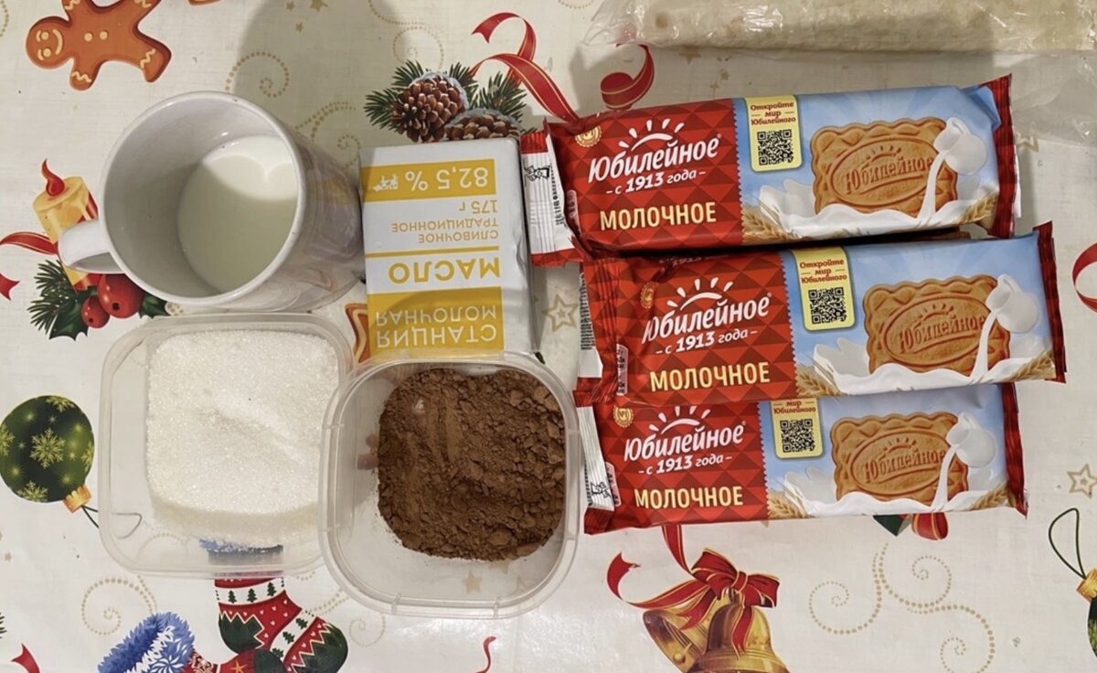 Что мне понадобилось : Печенье юбилейное 5 пачек Пачка сливочного масла 180 гр Молоко 150 мл Сахар 5 ст ложек Какао 3 чайные ложки 1 Этап Раздробила печенье скалкой, но не в пыль , нужно что бы остались большие кусочки 2 Этап В кастрюльке я смешала молоко, сливочное масло , сахар и какао. Ставлю на огонь , постоянно помешивая. Важно не доводить данную смесь до кипения ! Нужно растопить сливочное масло и размешать весь сахар 3 Этап Шоколадную массу постепенно смешиваю с печеньем Вот что у меня получилось 4 Этап Формируем не большие колбаски в пищевой пленке и оставляем их на 1,5 часа в холодильнике Вот такая вкусная чайная колбаска у меня получилась !