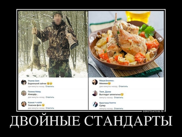Я люблю животных. Но тем не менее, я ем мясо. Это лицемерие? Возможно. В нашем городе есть собачий приют, и люди, которые там работают (за плату есть и волонтёры есть) ещё больше любят животных, но кормят собак кашей с мясом. В приюте около 150-и собак, и едят они очень много. В одного Тайсона (это имя пса) 10 кг весом за раз вмещается до двух килограмм каши за раз. А таких раз в день бывает несколько. И он при этом худой! Кто держит собак, понимает, что это - запредельный объём. Ежедневно умирает одна курица просто для того, что бы сотрудники приюта могли набить ему желудок. Но Тайсон, конечно, исключение. Большинство собак едят всё-таки не столько, но много. И толстеют. Каша собачья с мясом, корм так же делают из мясных продуктов. Люди любят в основном собак и кошек, а это - хищные животные. Почему травоядные не достойны такой же любви? Вообще, насилие над животными - неотъемлемая часть природы, увы: сильный пожирает слабого, естественный отбор. Если люди не будут обижать животных —
