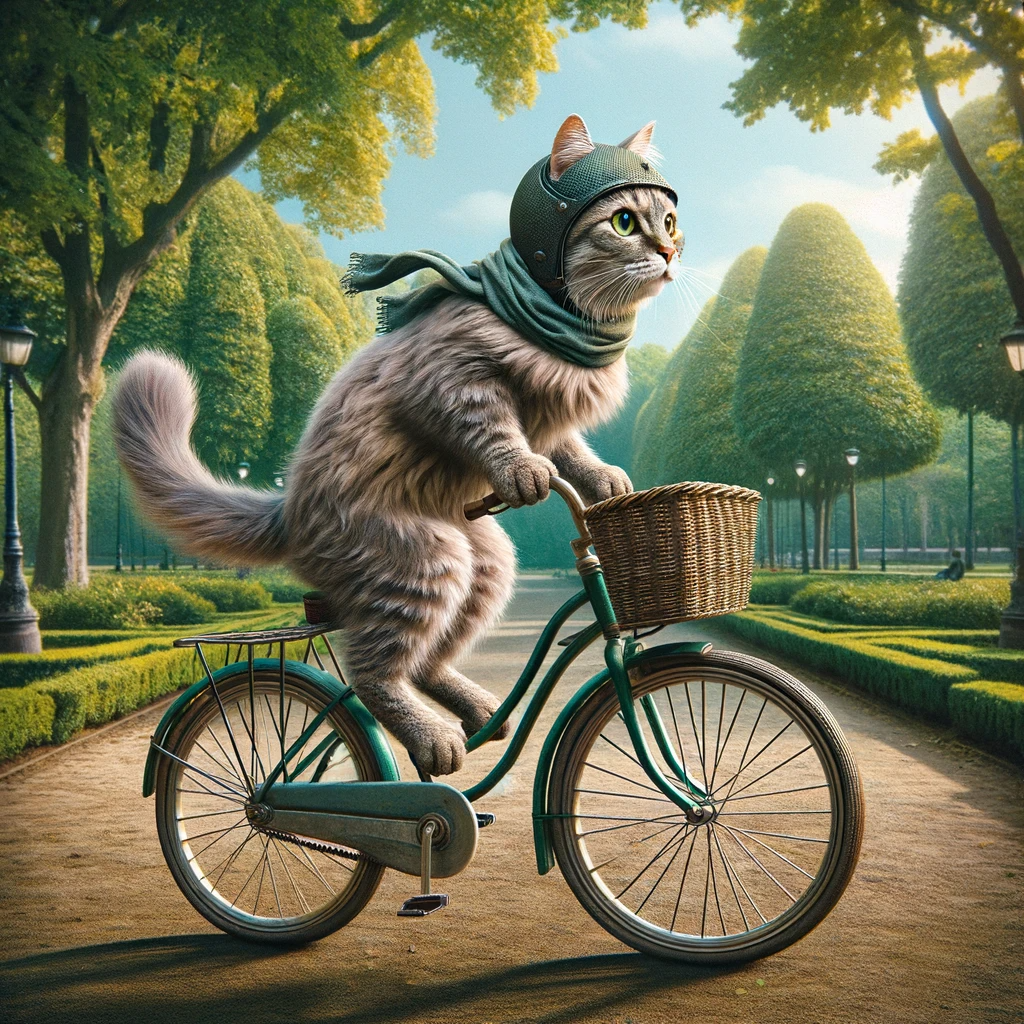 Глава 1: Неожиданное начало В маленьком, уютном городке, где каждый знал друг друга, жил кот по имени Мурзик. Он не был обычным котом. Мурзик обладал невероятной любознательностью и удивительным упорством, которые часто приводили его к самым необычным приключениям. Однажды, прогуливаясь по тихим улочкам города, Мурзик заметил что-то необычное. У одного из домов стоял странный двухколёсный аппарат. Это был велосипед. Мурзик, как истинный исследователь, не мог пройти мимо такой находки. Он подошёл поближе и начал осматривать его. Велосипед был старым, но хорошо сохранившимся, с большим передним колесом и меньшим задним. "Как интересно!" - подумал Мурзик. Он решил попробовать сесть на велосипед. Сначала это было непросто, ведь Мурзик был всего лишь кот, но его любопытство и упорство помогли ему. Он забрался на велосипед и удивительным образом смог удержаться на нём. Мурзик начал крутить педали. Первые его попытки были не очень успешными, но постепенно он научился поддерживать равновесие.