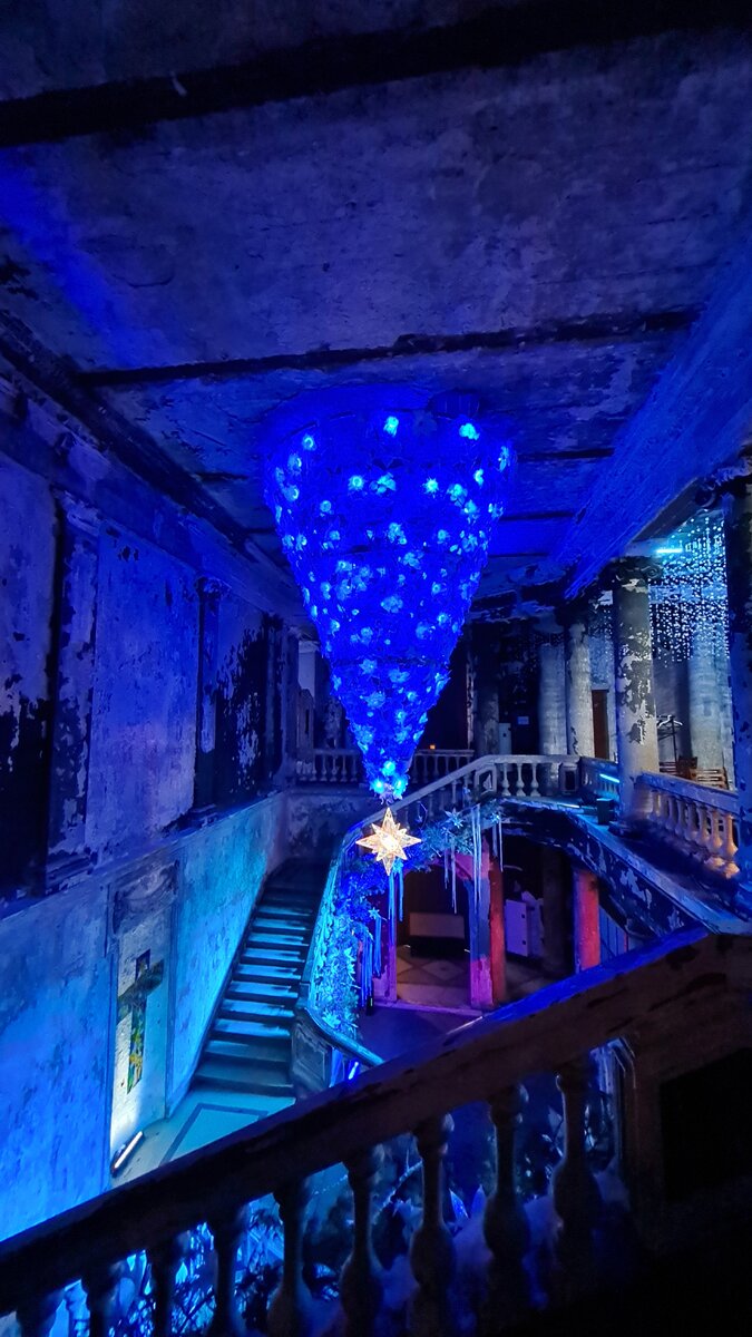 Недавно посетили выставку Рождество в Анненкирхе. Как всегда, размах поражает. Но скажу честно, "Сотворение" и "Апокалипсис" мне понравились больше. Но и здесь есть что посмотреть. Классная перевернутая елка на потолке, состоящая из лилий сразу привлекает внимание. Поднимаемся по лестнице на второй этаж и видим пылающий камин. Здесь можно погреться и подумать о своём. Дальше, по всему периметру картины современных художников на религиозную тему. Все картины можно приобрести. А вот и пещера, где родился Иисус. Дальше на лестнице мы видим волшебный свет Вифлеемской звезды. На первом этаже тоже интересно. В основном зале расположился настоящий пальмовый лес. А в молельной комнате проецируется галограмма пастора Анненкирхе Евгения Раскатова. Пастор рассказывает о Рождество с точки зрения религии. Тут же стоит великолепная елка, можно посидеть, полюбоваться и послушать Пастора. Есть здесь ещё одна очень интересная инсталляция. Комната, наполненная сеном, символизирующая пещеру