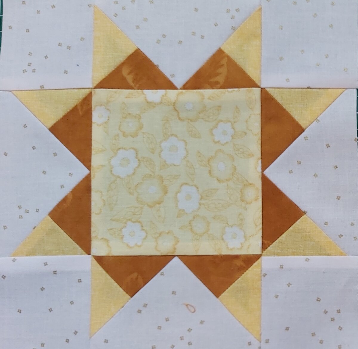 Размеры брала здесь для 16" блока. Сшит центральный блок 8". Очень давно хотела сшить звезду с лучами из 2х тканей и, наконец, нашла время и цель использования. Плюс, блок вышел сразу у 2х производителей, что позволило не тратить время на свои расчёты. Сшила сразу 2 центра со светлой и более темной тканью, т.к. хотела посмотреть результат. Размеры брала из статьи Блок января. Крой плюс диагонали на деталях А или В. Прошиваем по диагонали, чтобы получить8 треугольниковв квадрате для 1 блока. Разрезаем, разутюживаем и проводим диагональ на изнаночной стороне квадратов. Далее шьем "Летящих гусей" и для этого правильно раскладываем детали по схеме блока. 2 замечания: 1.Диагональ направлена из центра к краю детали. 2. Если темный треугольник должен быть вместе с центром, то раскладываем наш квадрат темной изнанкой к центру Пришиваем по диагонали, обрезаем, разутюживаем. Также, очень внимательно прикладывем 2й квадрат к гусику: Пришиваем, обрезаем, разутюживаем и раскладываем д